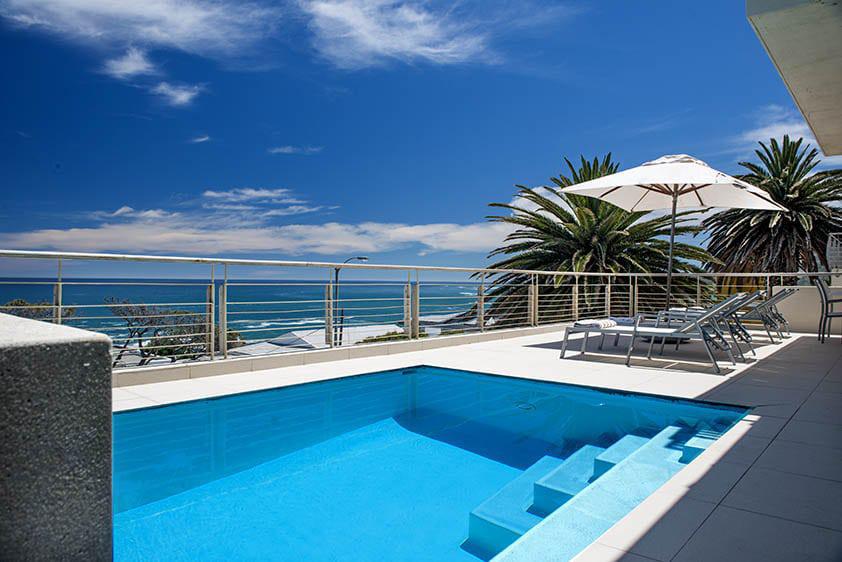Outside is a glorious pool area with sun loungers and exceptional sea and mountain views. This is the perfect spot to cool off after an afternoon on the beach, or to enjoy a cocktail as you watch Cape Town’s exceptional sunsets.