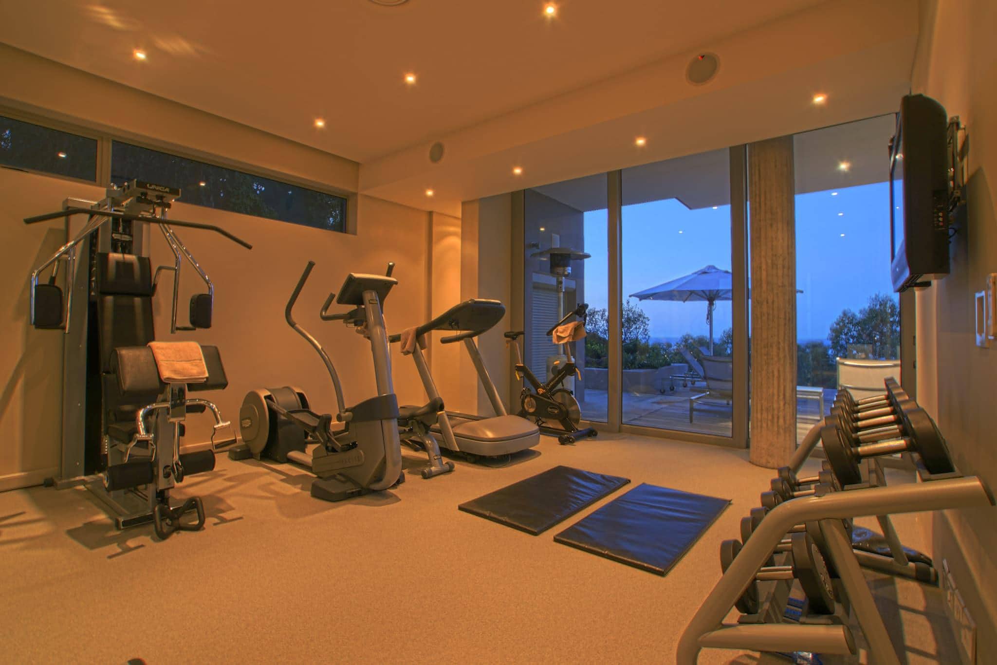 Live-in housekeeper24 hour monitored alarm and electric fencingAir conditioning and sound system throughout houseTelephone, wireless internet and fax machinePrivate massage roomGymChef's kitchen - for a private chefFully equipped, self-catering kitchenLaundry room