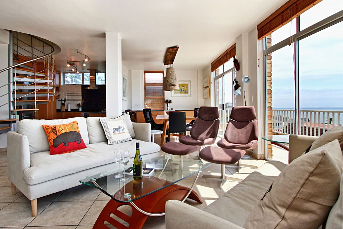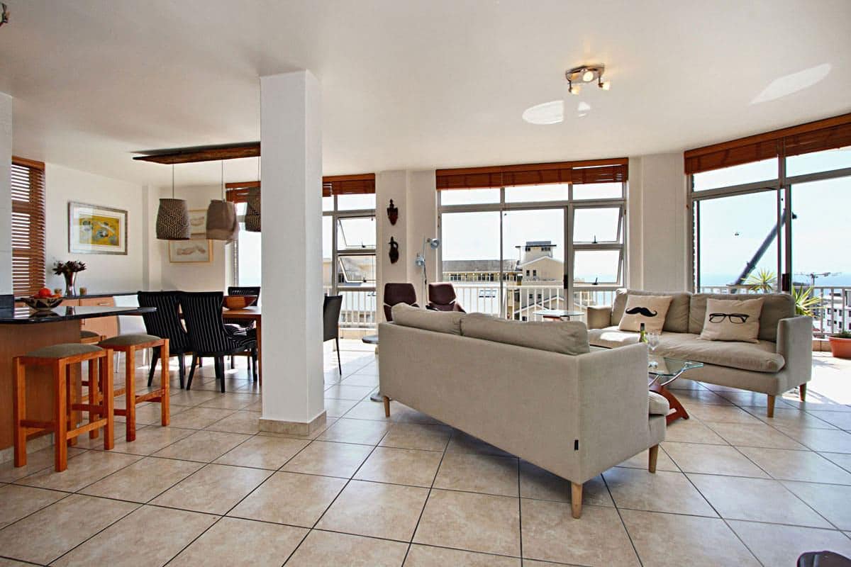 This beautiful 3 bedroom apartment is situated in Bantry Bay and spread over two levels. Guests will feel at home in this spacious unit with great views over Bantry Bay and Three Anchor Bay. The apartment offers a large, wrap around terrace which is great for entertaining with outdoor dining and a barbeque. The block is secure and there is a private parking bay in a garage.
