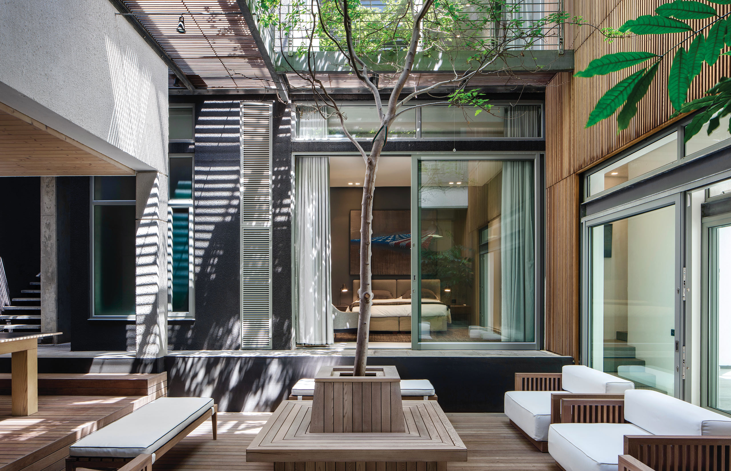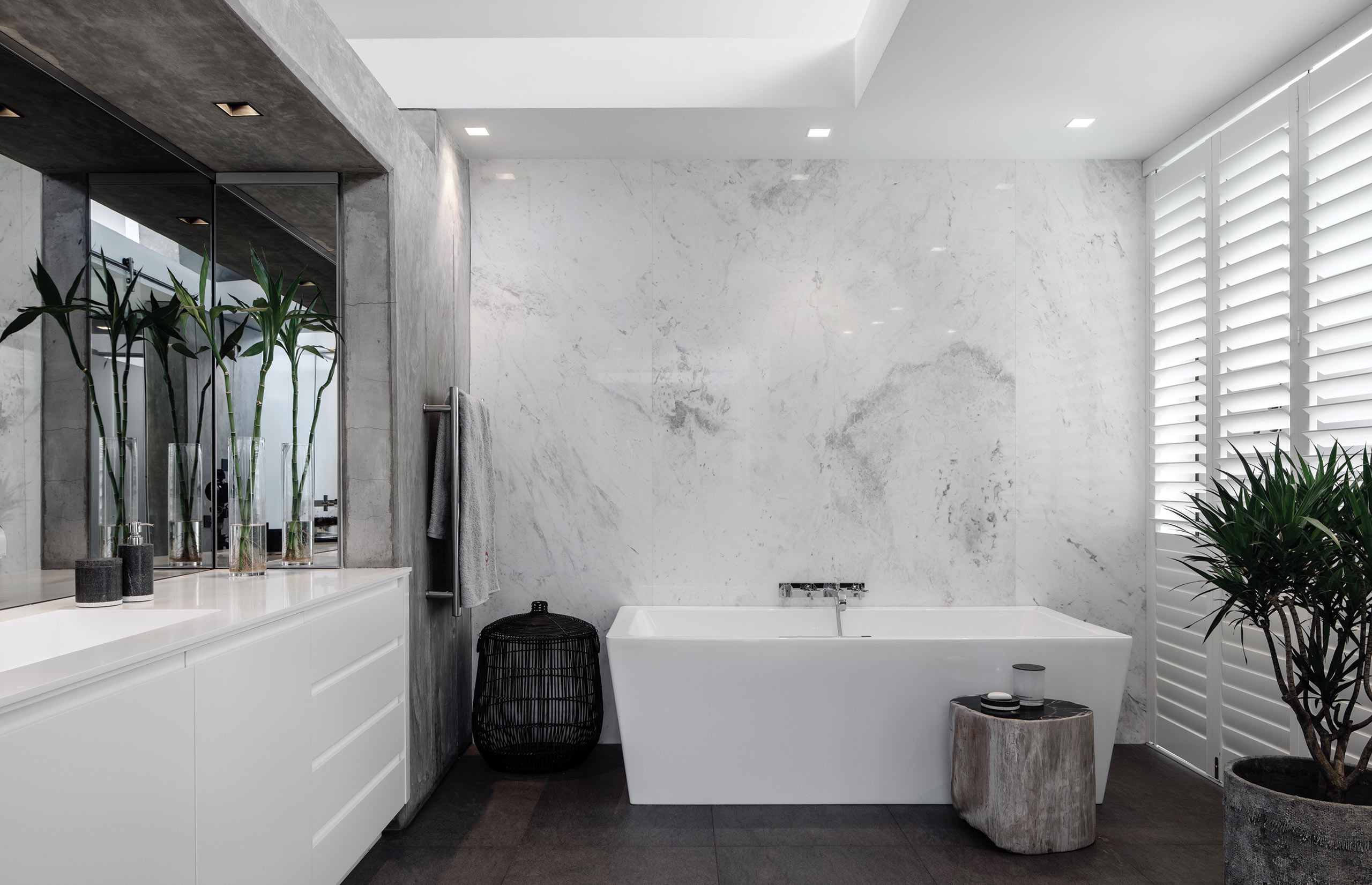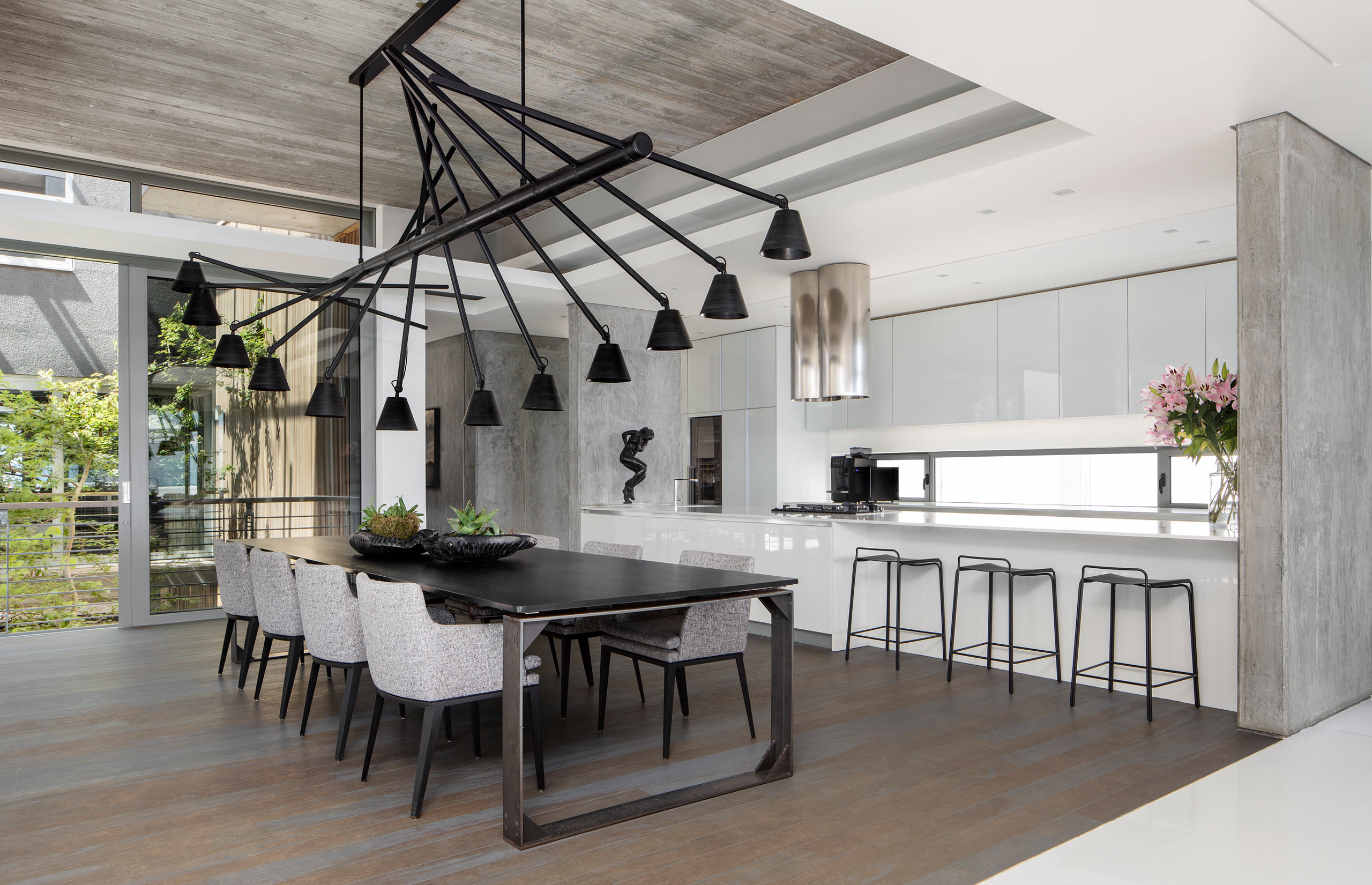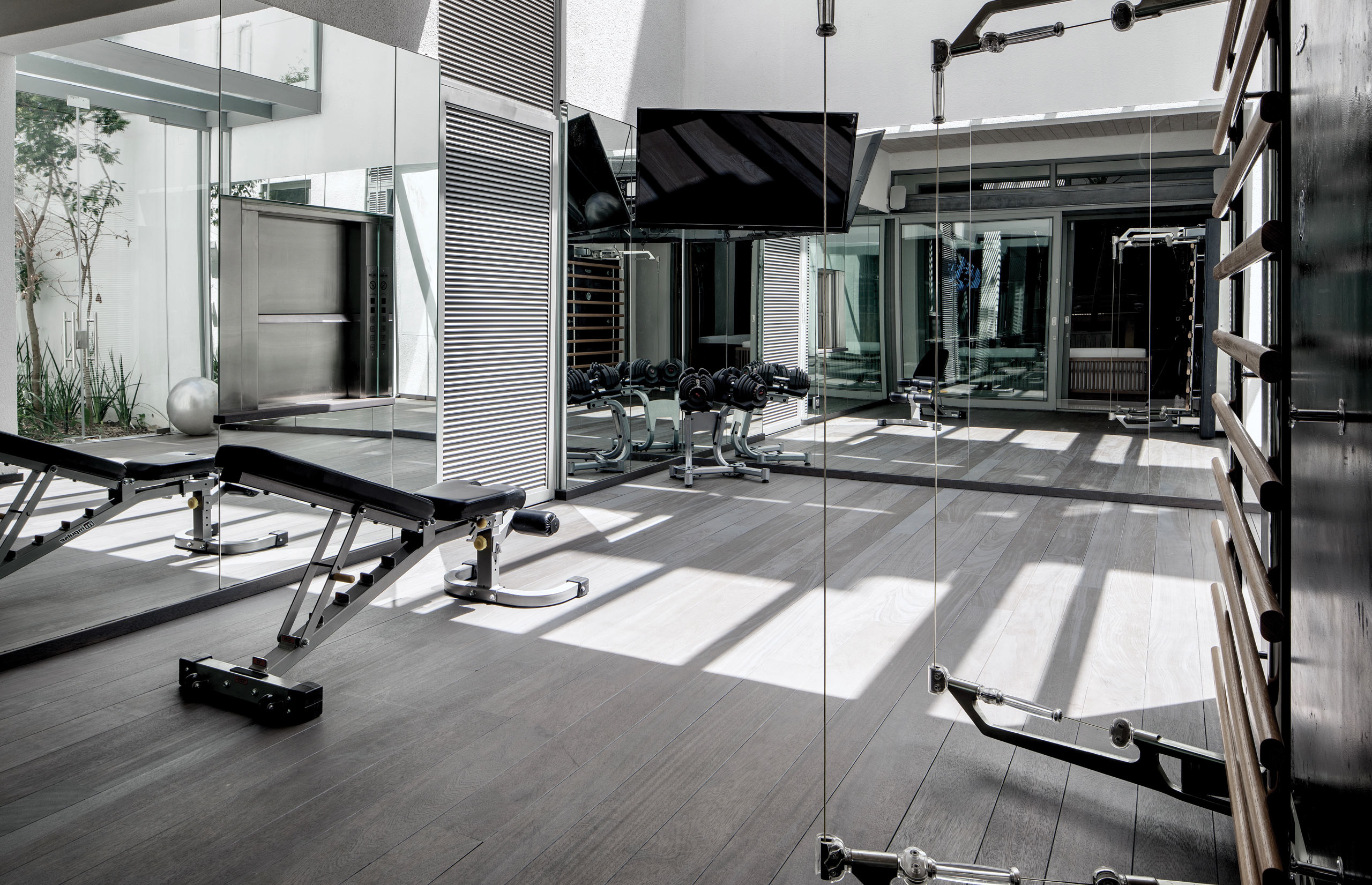 Enter the house via an achingly cool glass elevator that descends through the 2nd floor 30 m L-shaped swimming pool, or take the steel cabled staircase suspended over the pool.