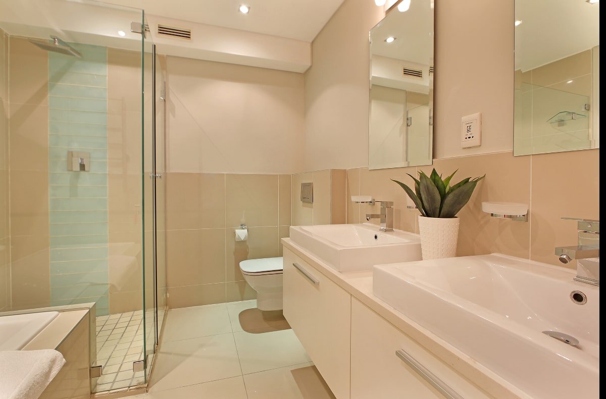 114 Eden on the Bays main bedroom consists of a double bed with en-suite bathroom with a bath, shower as well as his and hers hand basins while the second bedroom also with double bed has access to a shared bathroom comprising of a shower and hand basin. Book this appealing accommodation offer that is 114 Eden on the Bay and experience the serene area of Big Bay in Bloubergstrand as well as breathtaking sunsets over the Atlantic Ocean.