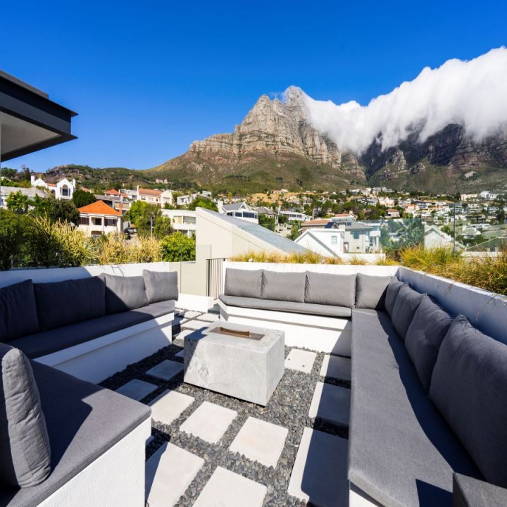 Roof terrace with seating and gas fireplace