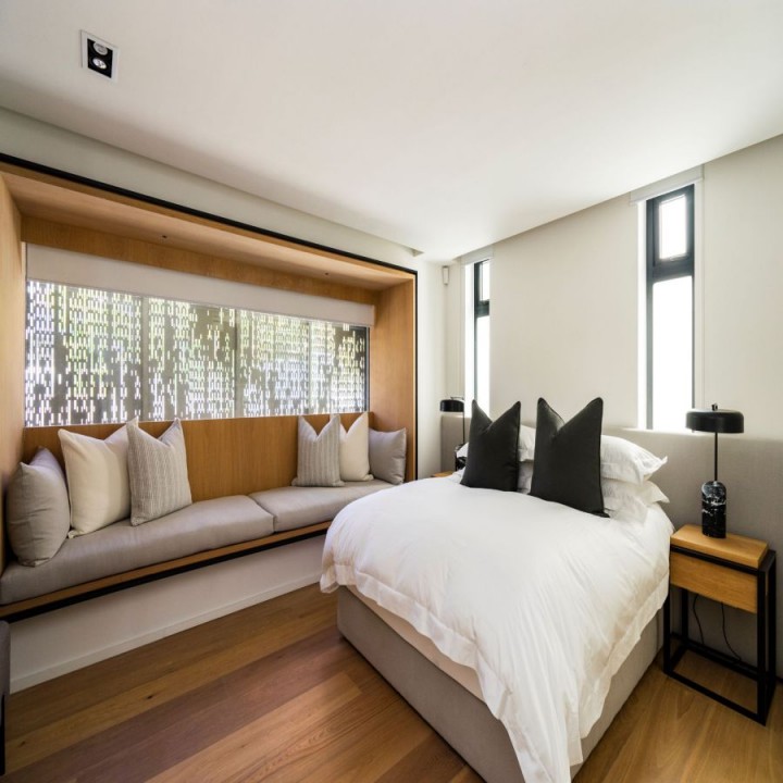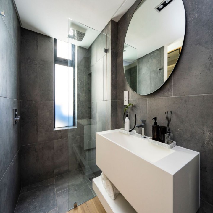 This villa features 5 en suite bedrooms, a sky room which opens op to a roof terrace with magical views of the ocean and mountains, an elevator and large swimming pool.