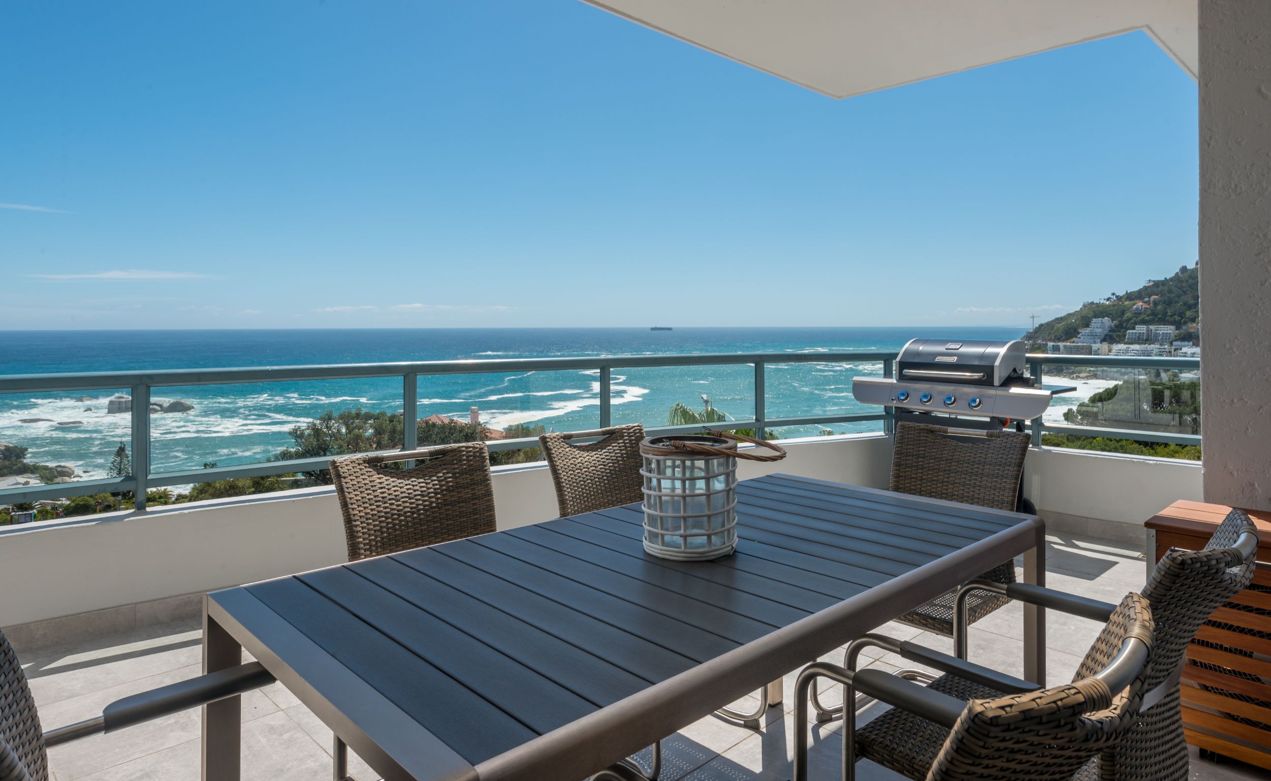 This elegant 3 bedroom, 2.5 bathroom is found in a secure block in the sought after suburb of Camps Bay. Enjoy incredible views of the ocean towards Clifton and Camps Bay from the balconies and relax in the contemporary style living spaces.