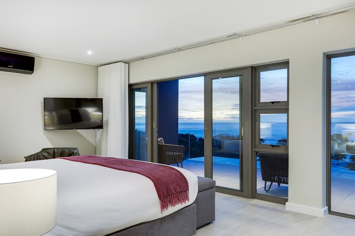 Each of the bedrooms is warm and inviting, decorated with colourful accents and beautiful artwork. They also enjoy views of the sea, mountains or garden.