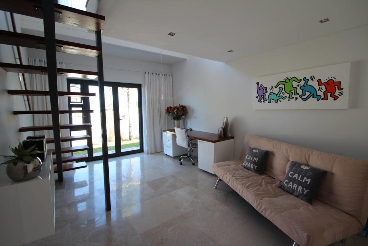 This spacious modern villa has been decorated with modern art, furnished with quality pieces and has travertine, marble and stone finishes.