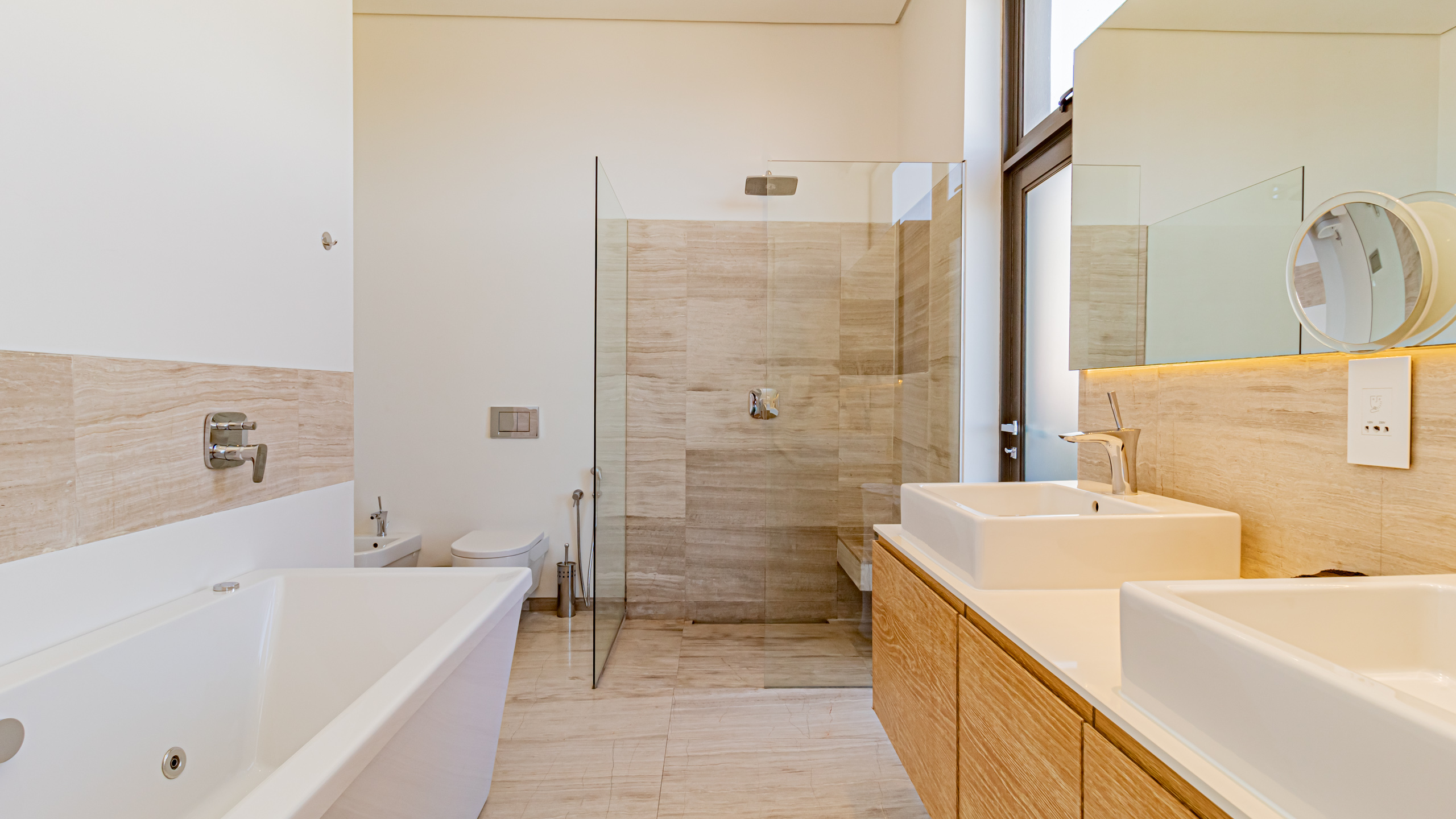 Ensuite with jet bath, shower, double vanity and bidet