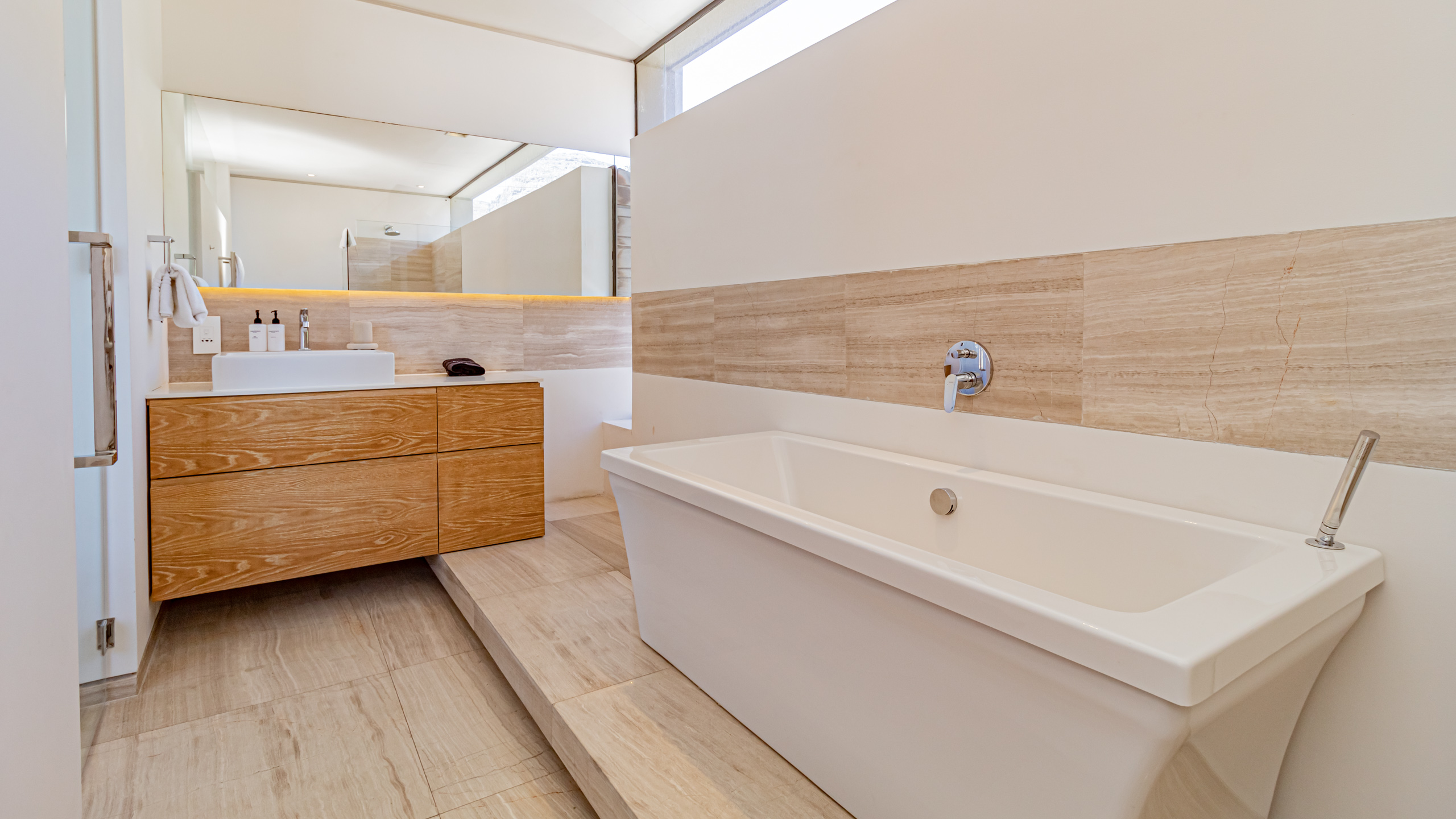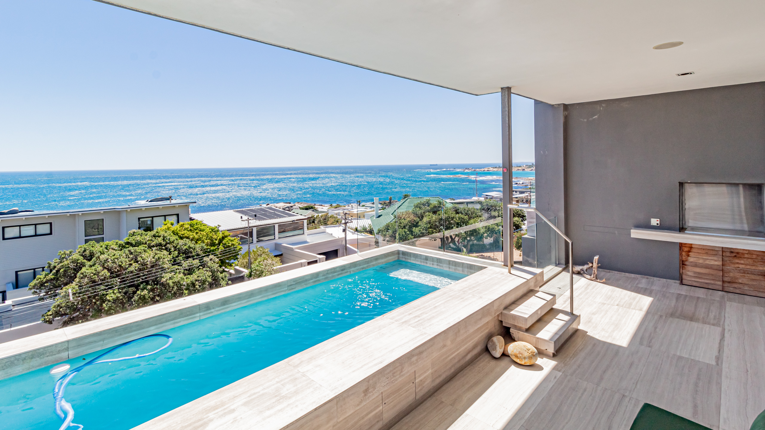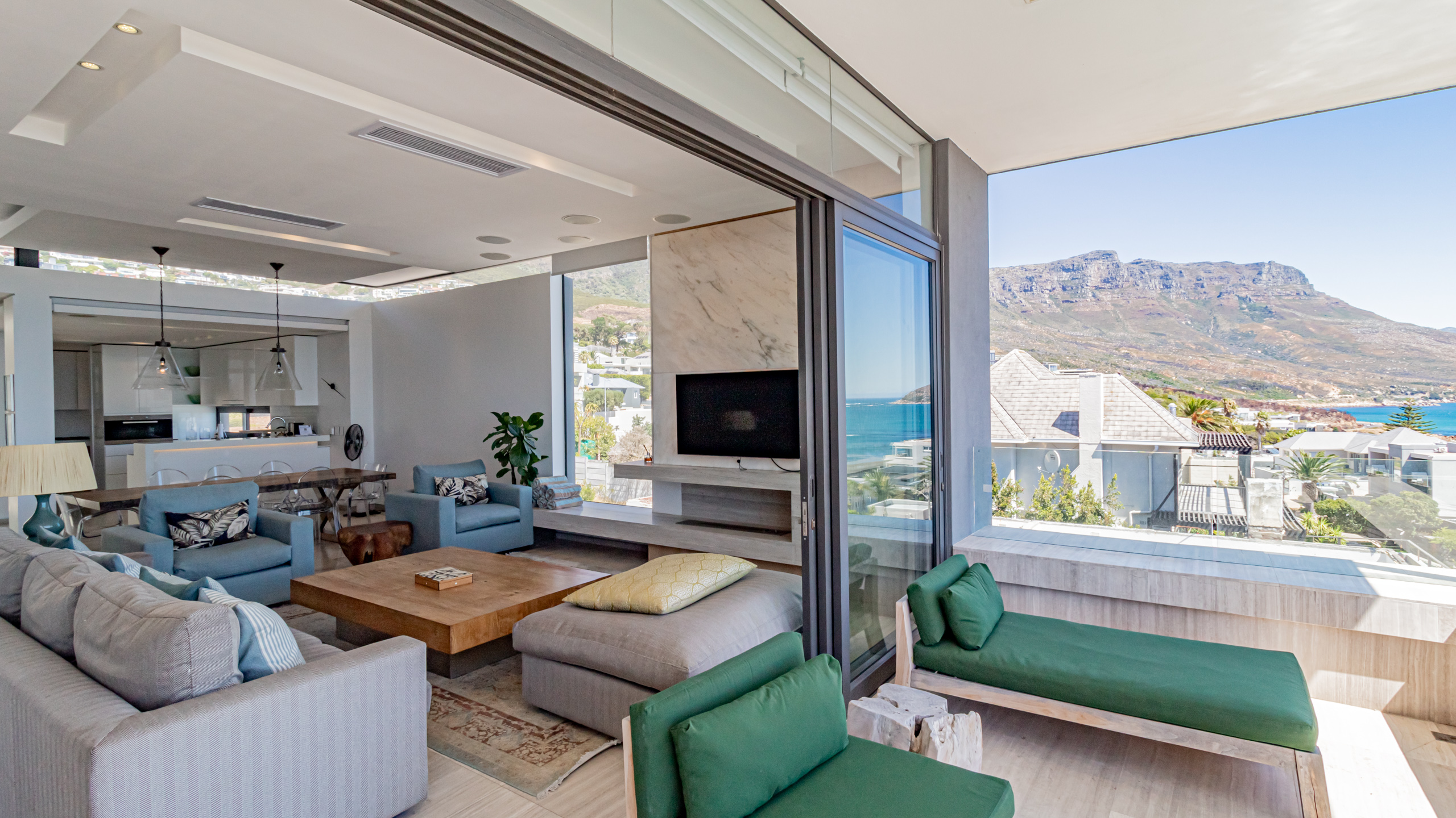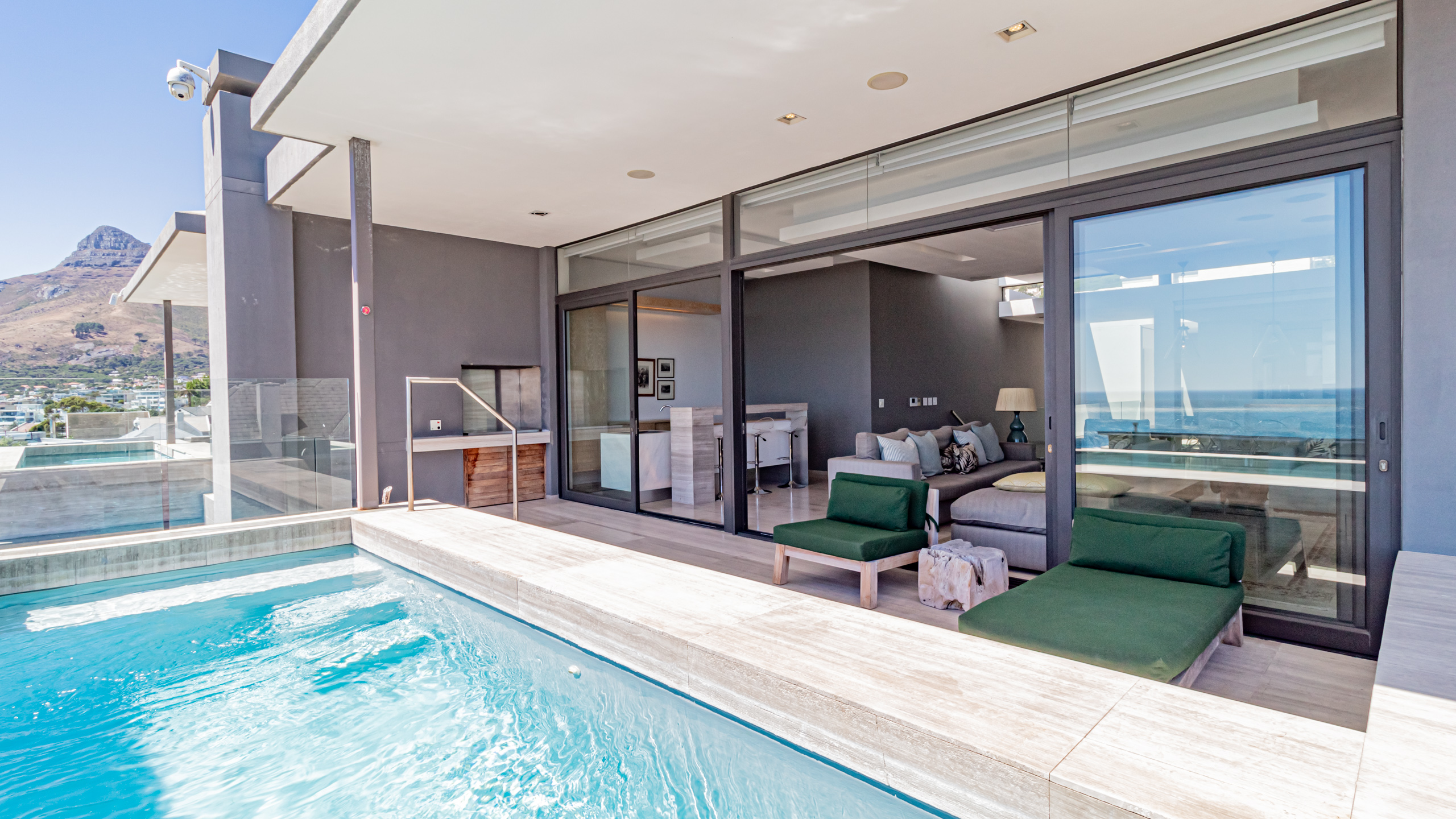 A modern (renovated in 2023), open-plan living villa in Camps Bay that offers unparalleled comfort and breathtaking views. This luxurious two-level home features 4 bedrooms, each with its ensuite bathroom, providing you and your family or friends the privacy you deserve.