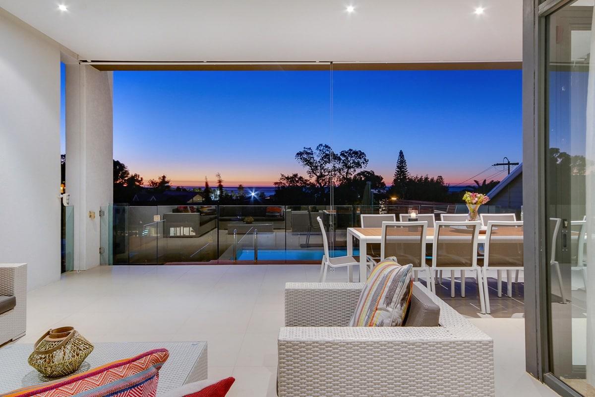 Designed to make the most of its location, floor to ceiling glass windows offer the sea views. The main double volume living area is completely open plan, and is the perfect space in which to host a dinner party or for the whole family to come together.