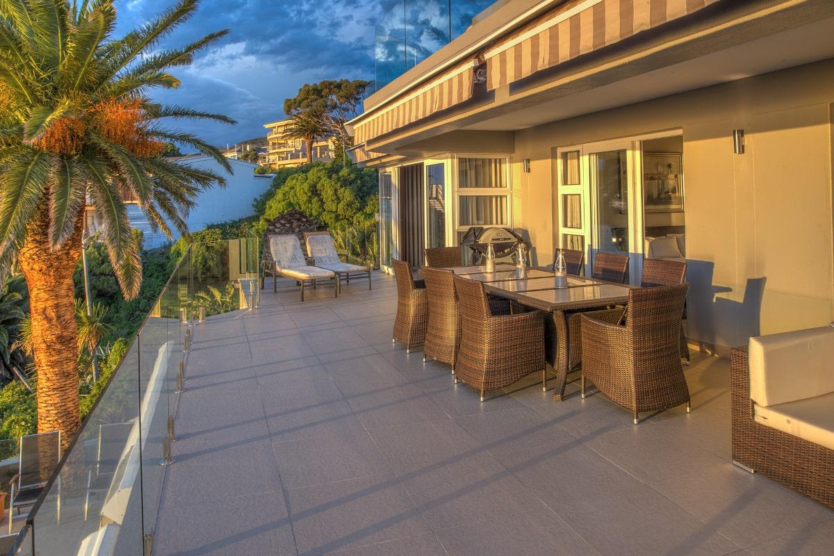 the living area and all 3 bedrooms of this luxury apartment have access onto the front terrace which spans the length of the apartment. Uninterrupted sea views and arguably the best sunsets in Camps Bay can be seen from here.