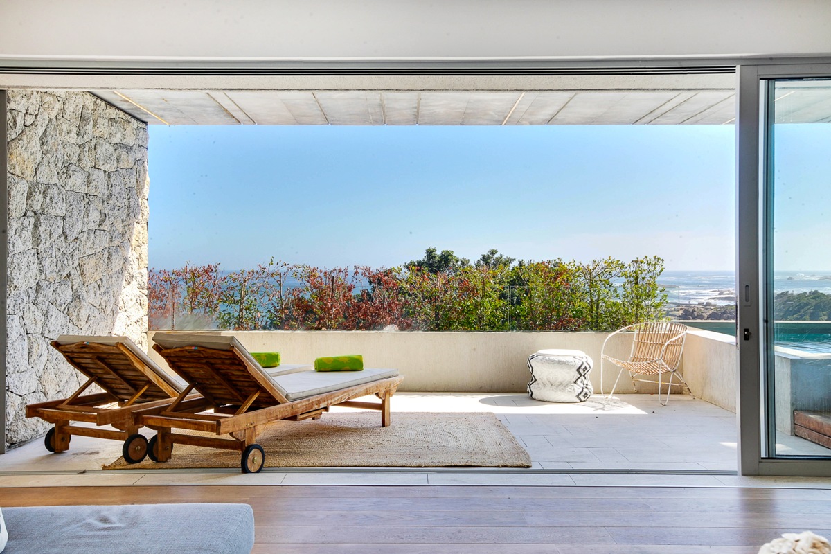 Spacious sunken lounge with comfortable couches leading directly onto private balcony