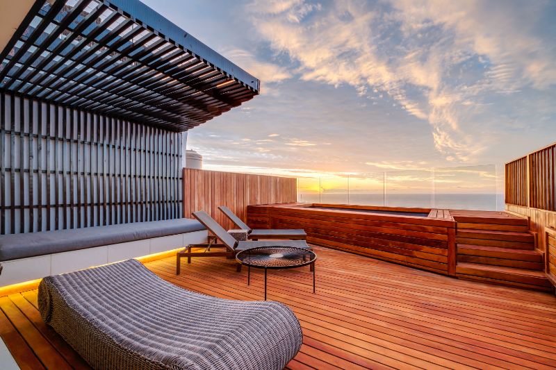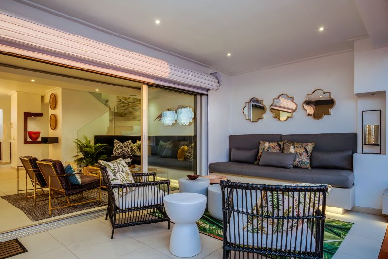 One of a small block of 9 terrace houses, this double story 3 bedroom apartment is situated high up in Camps Bay, in a very quiet, family friendly neighbourhood. It has a lovely outdoor area and incredible sea views.
