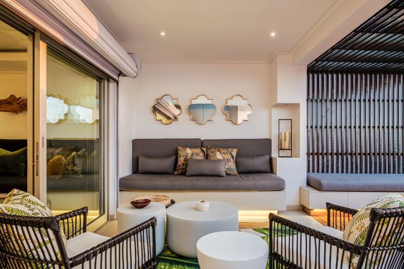 Part of the downstairs balcony is overlooked by the adjacent apartment.