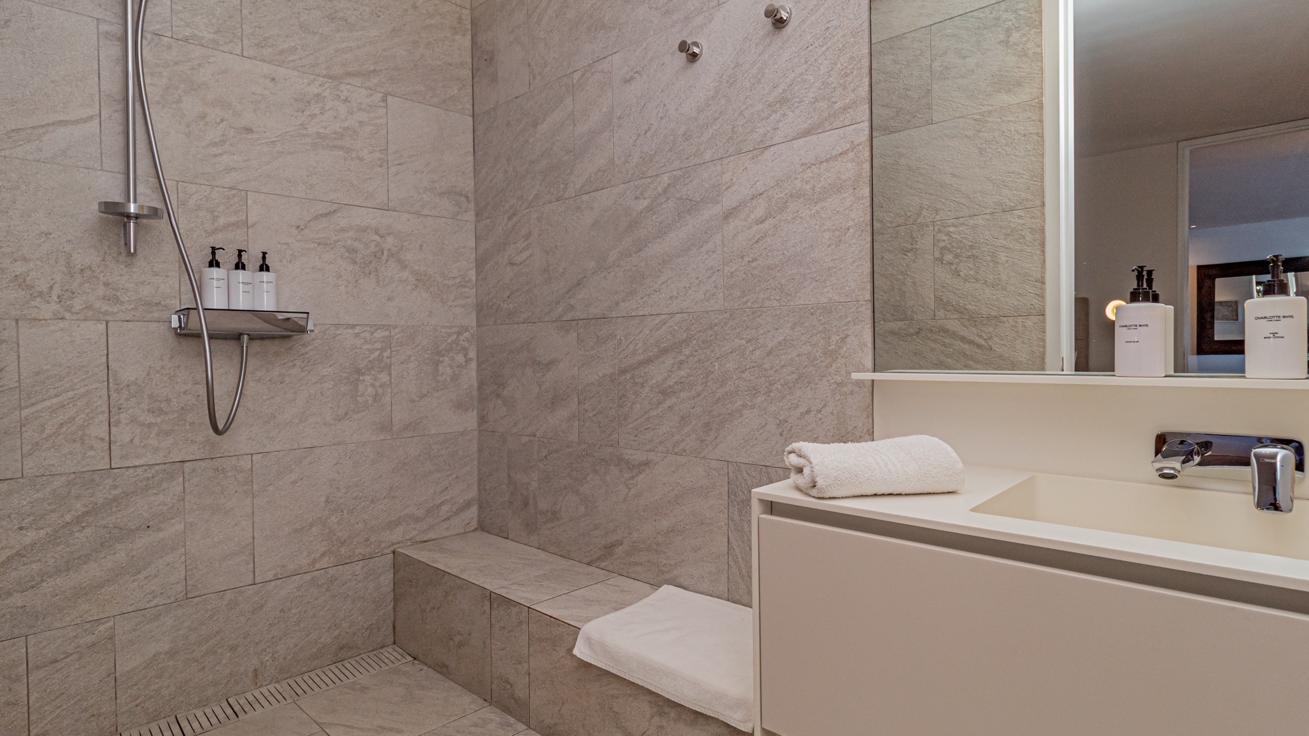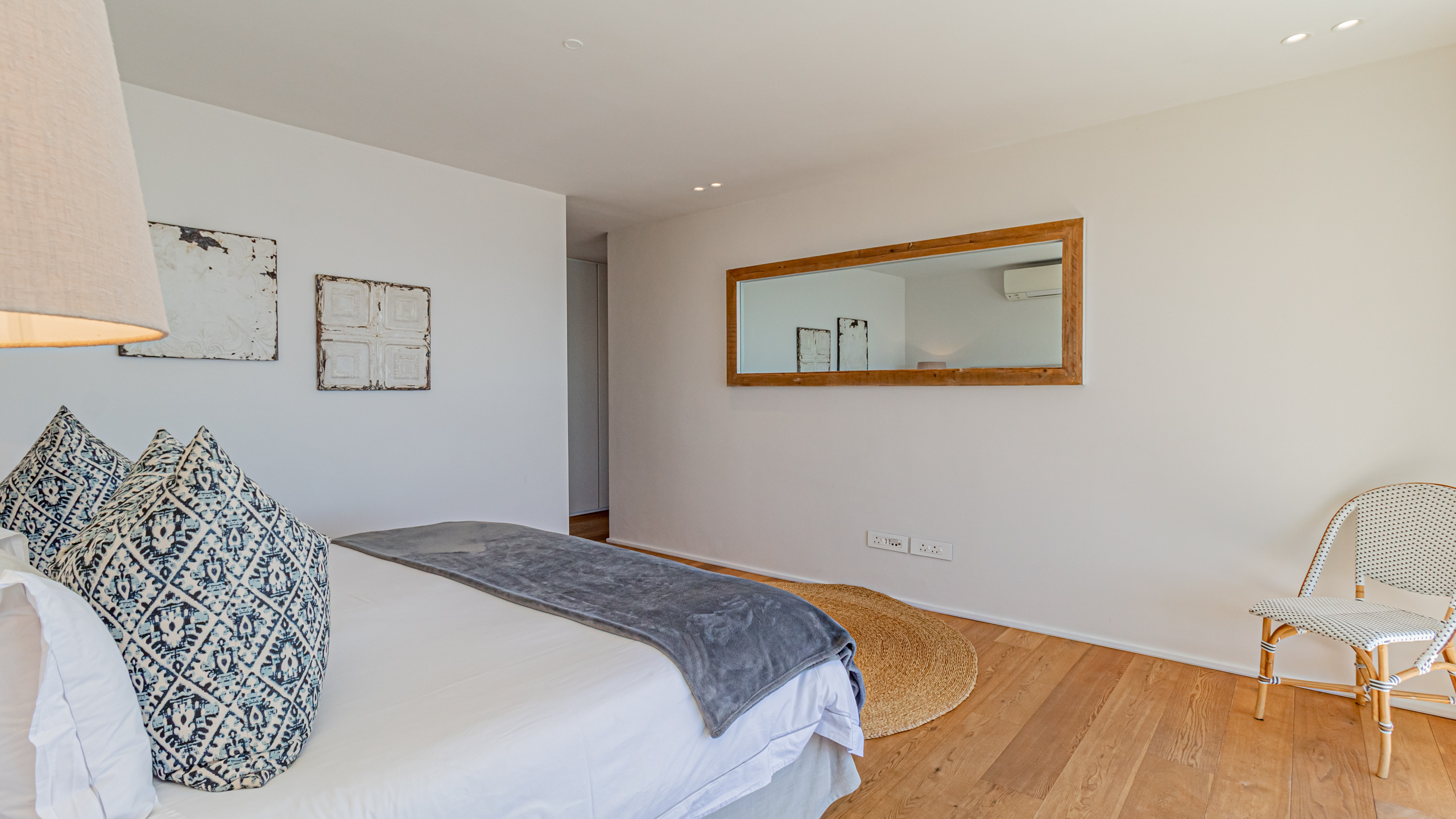 The master suite has a King-size bed, sea views, an en-suite with a bath and a shower and access onto the balcony. The second and third bedrooms also have King-size beds, each has its own en-suite bathroom with a shower and access onto the courtyard.