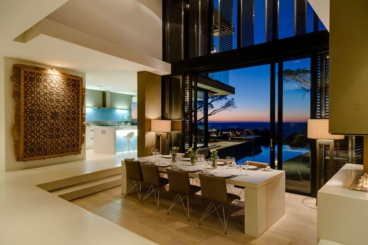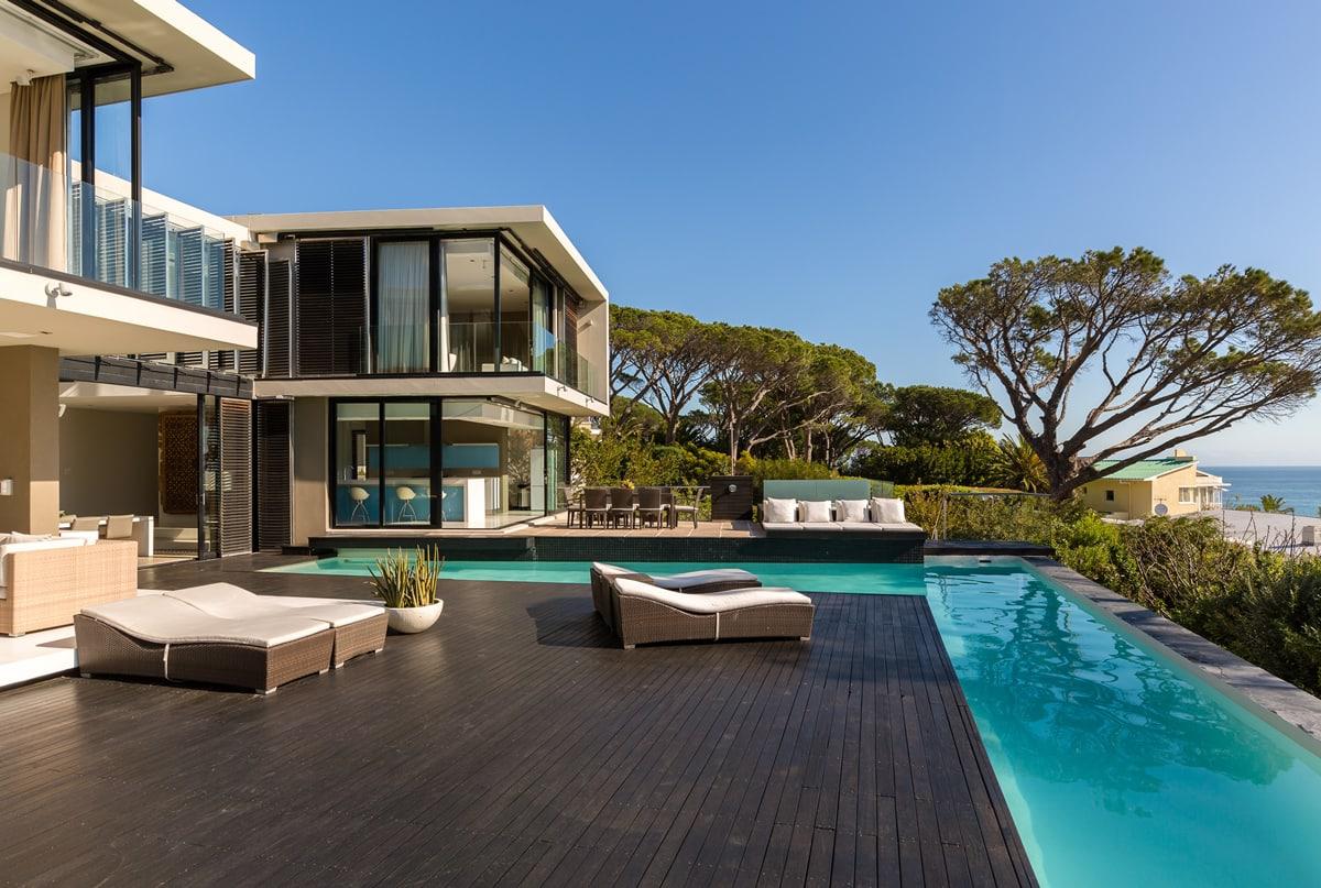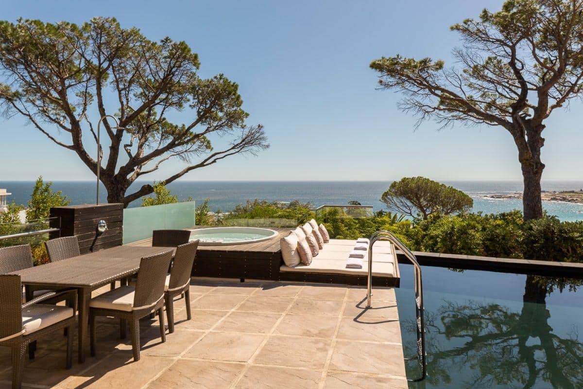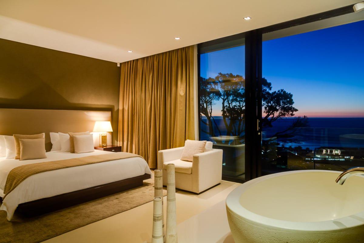 This 6 bedroom Camps Bay villa has been elegantly built and styled. As you walk through the front door, you have a spacious living environment with a sunken dining room table in front of you, a luxurious lounge with gas fireplace to your right and a modern fully equipped kitchen to your left. All three areas open out onto the outdoor deck allowing the most magnificent ocean views to be seen. The villa offers a gym, steam room and entertainment area in the basement with a home theatre room in the 6th bedroom. This villa is sure to wow any guest travelling to Cape Town for business or leisure.