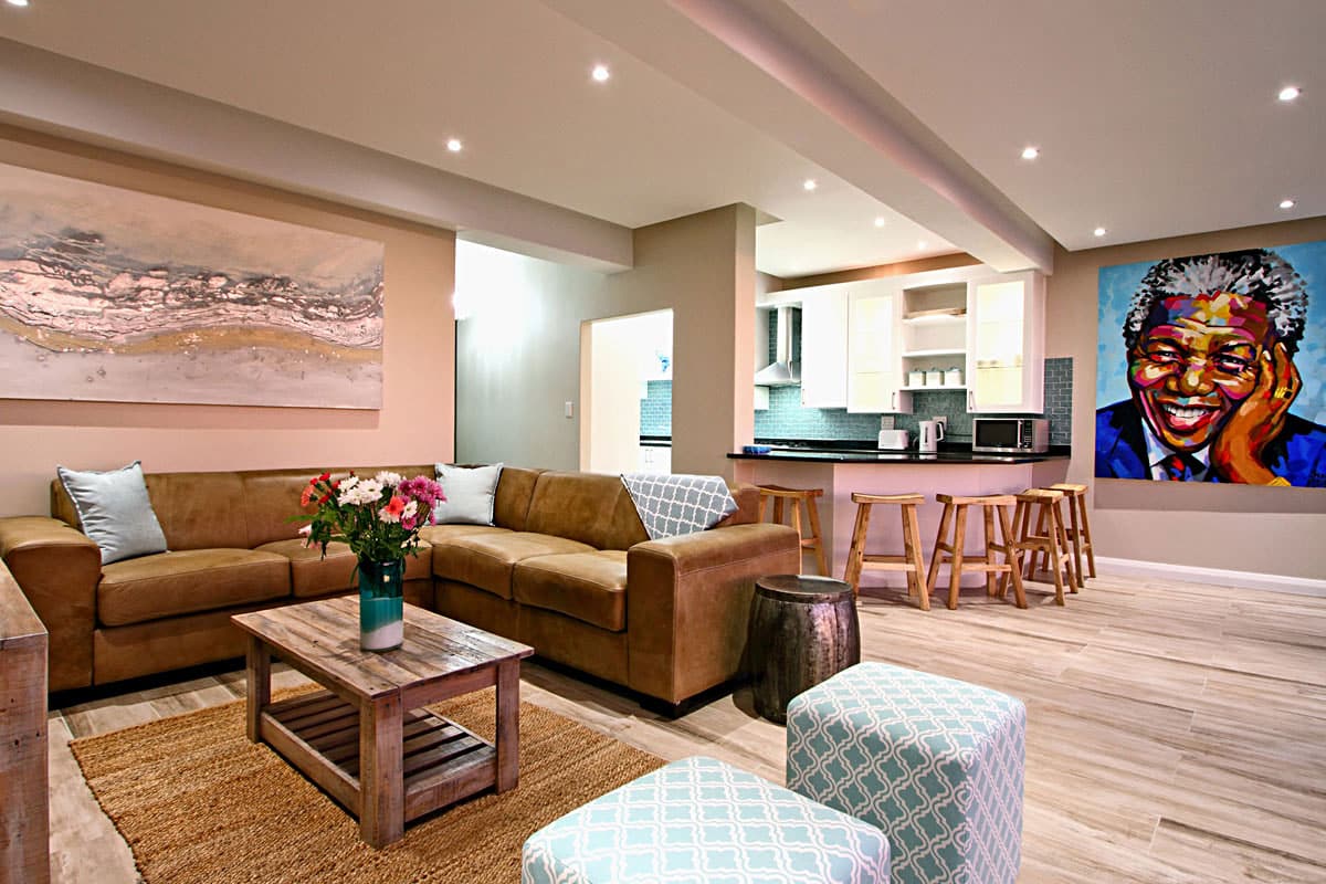 Sunset Cove is situated in a very secure block in upper Camps Bay with a dedicated garage and off-street visitors parking bay. The complex has two swimming pools for guests to use and a beautifully kept garden. A short drive will take you to the palm-lined beachfront of Camps Bay and the V&A Waterfront