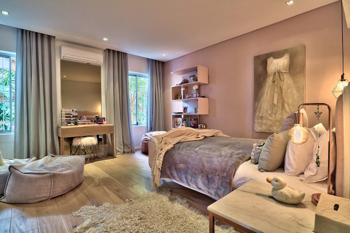 The villa is chic and modern, decorated in neutral tones with luxurious furniture and beautiful artwork. The rooms also have small personal touches to create a more welcoming and homely feel.