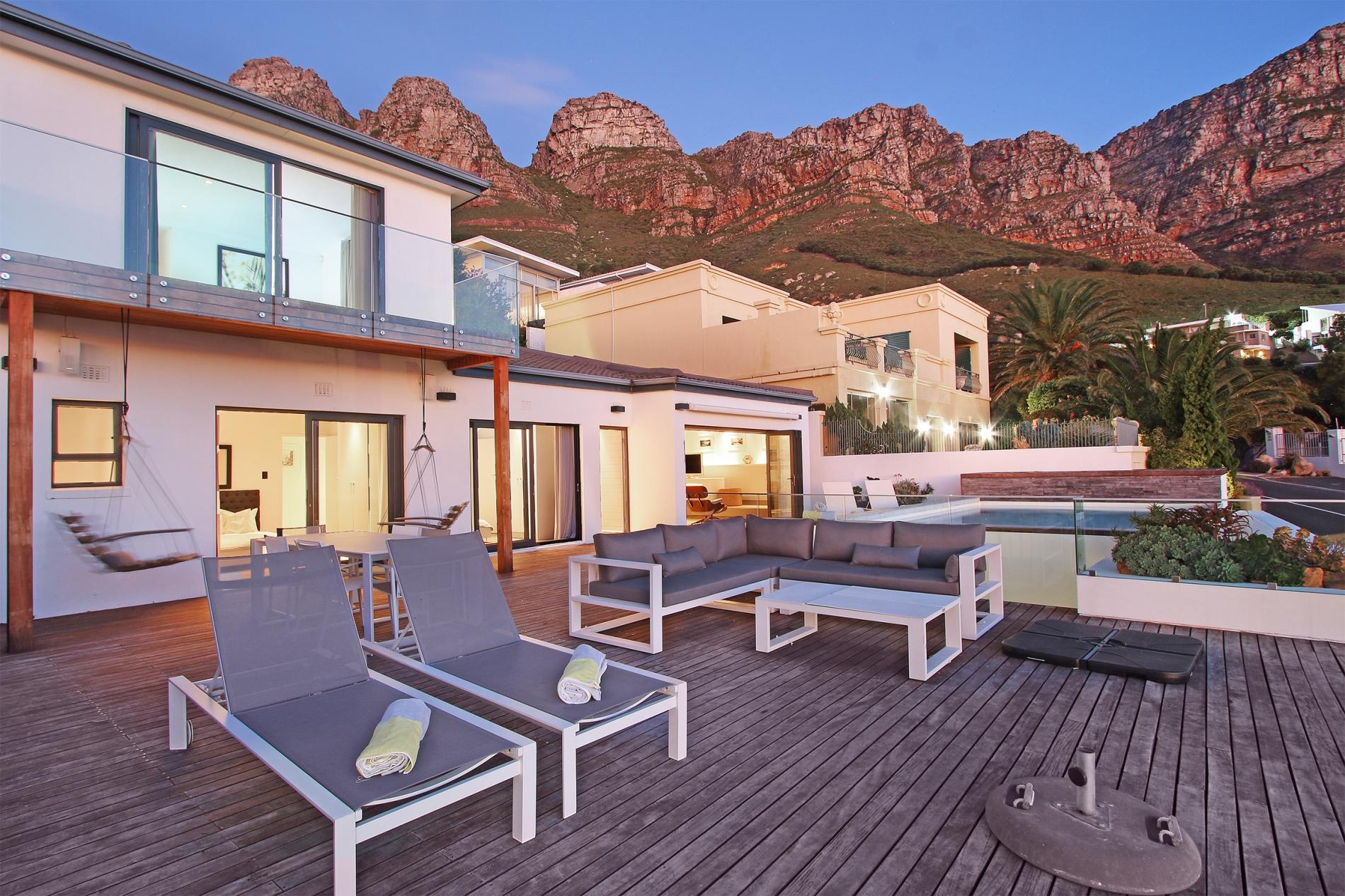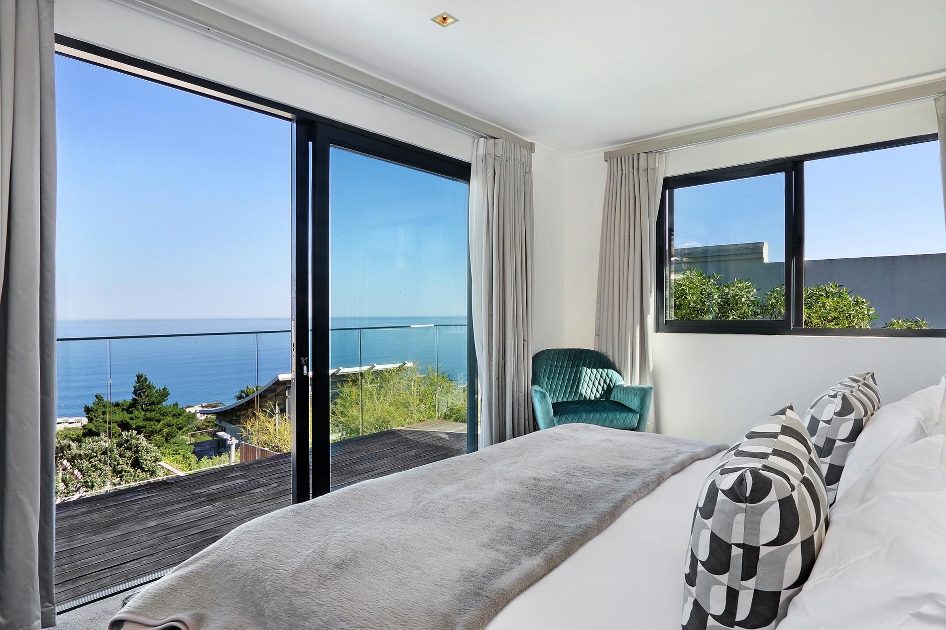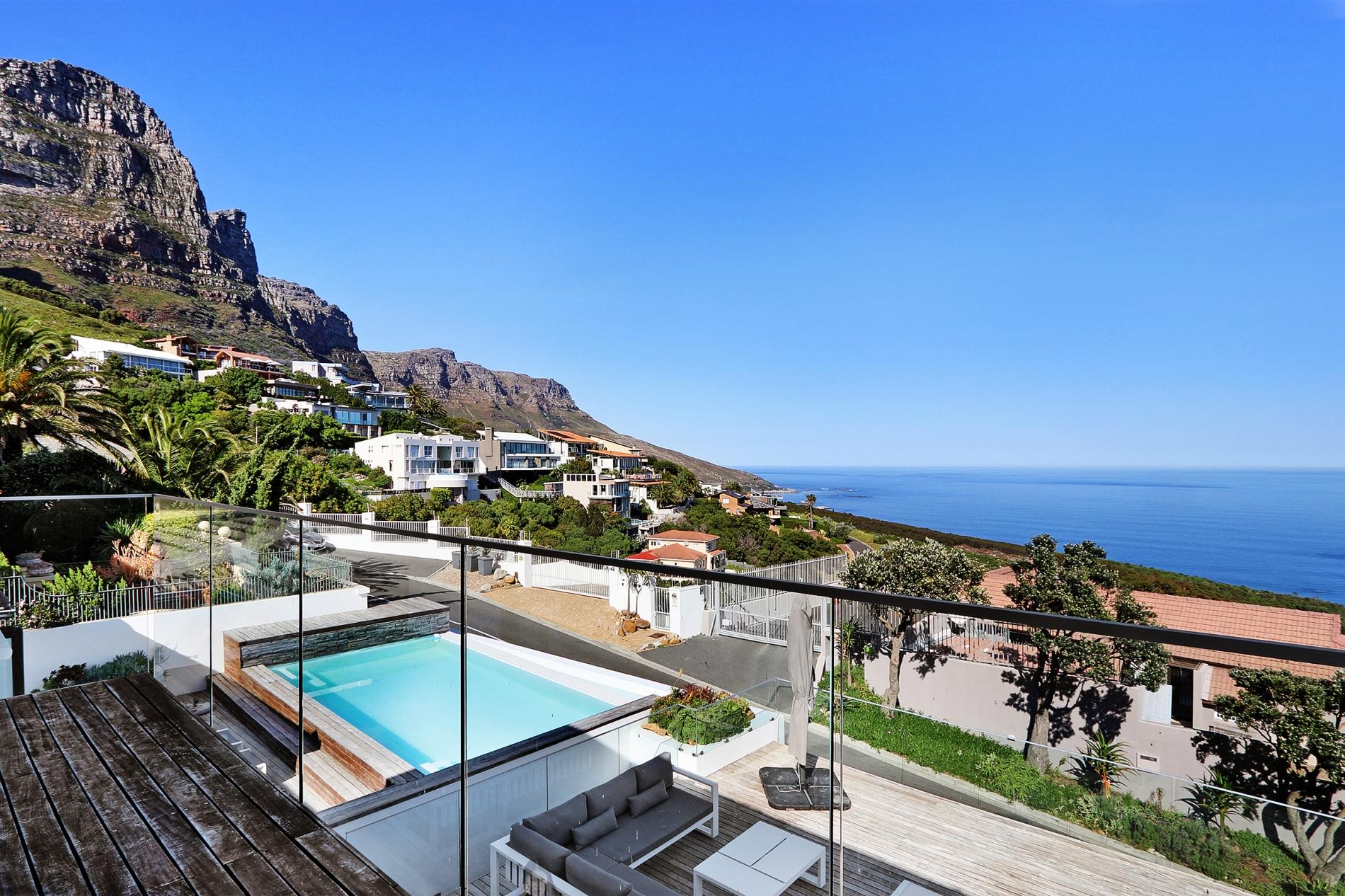 All three bedrooms are sea-facing. Two bedrooms are located downstairs and the master bedroom is located on the upper level. The outdoor area has a large private deck that is ideal for those that love entertaining. An elevated pool on the deck enables one to enjoy the surrounding sea and mountain views. At the back of the property you can relax in the garden setting with a small lounge area. Ty Gwyn is in a great location and close to all the attractions and amenities Cape Town has to offer.
