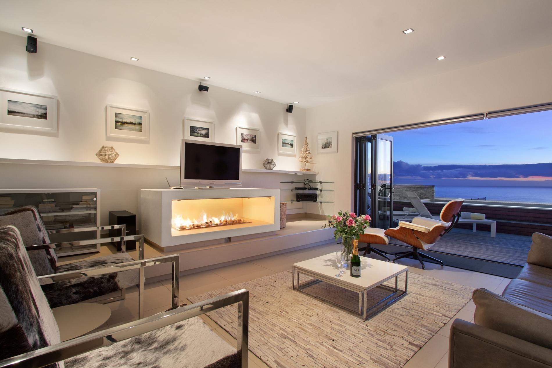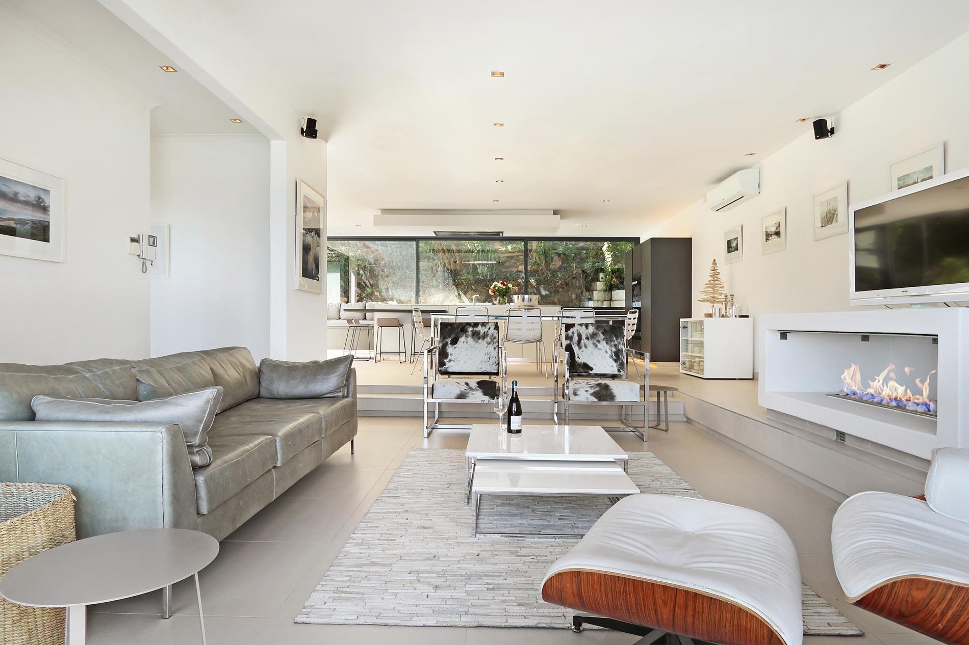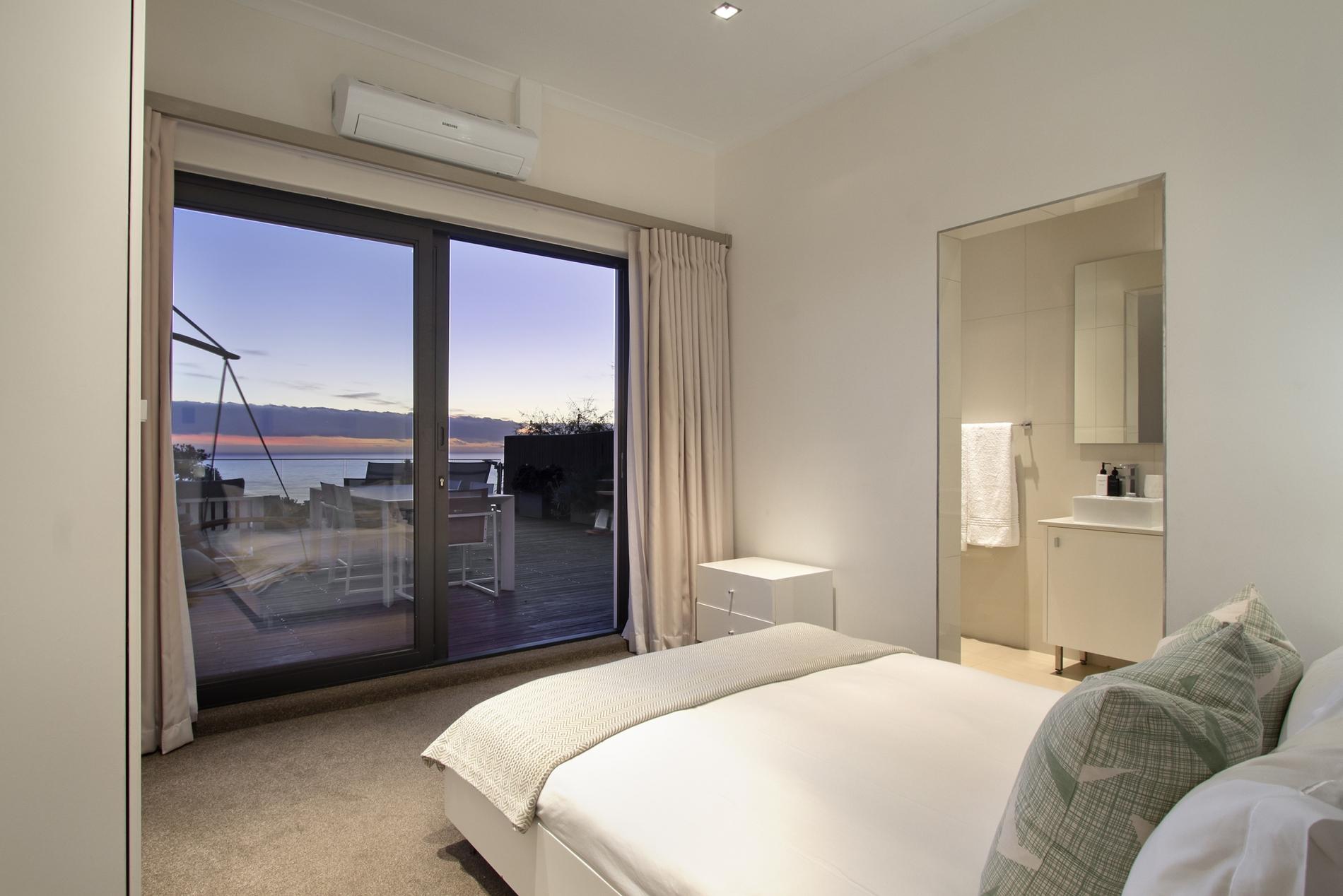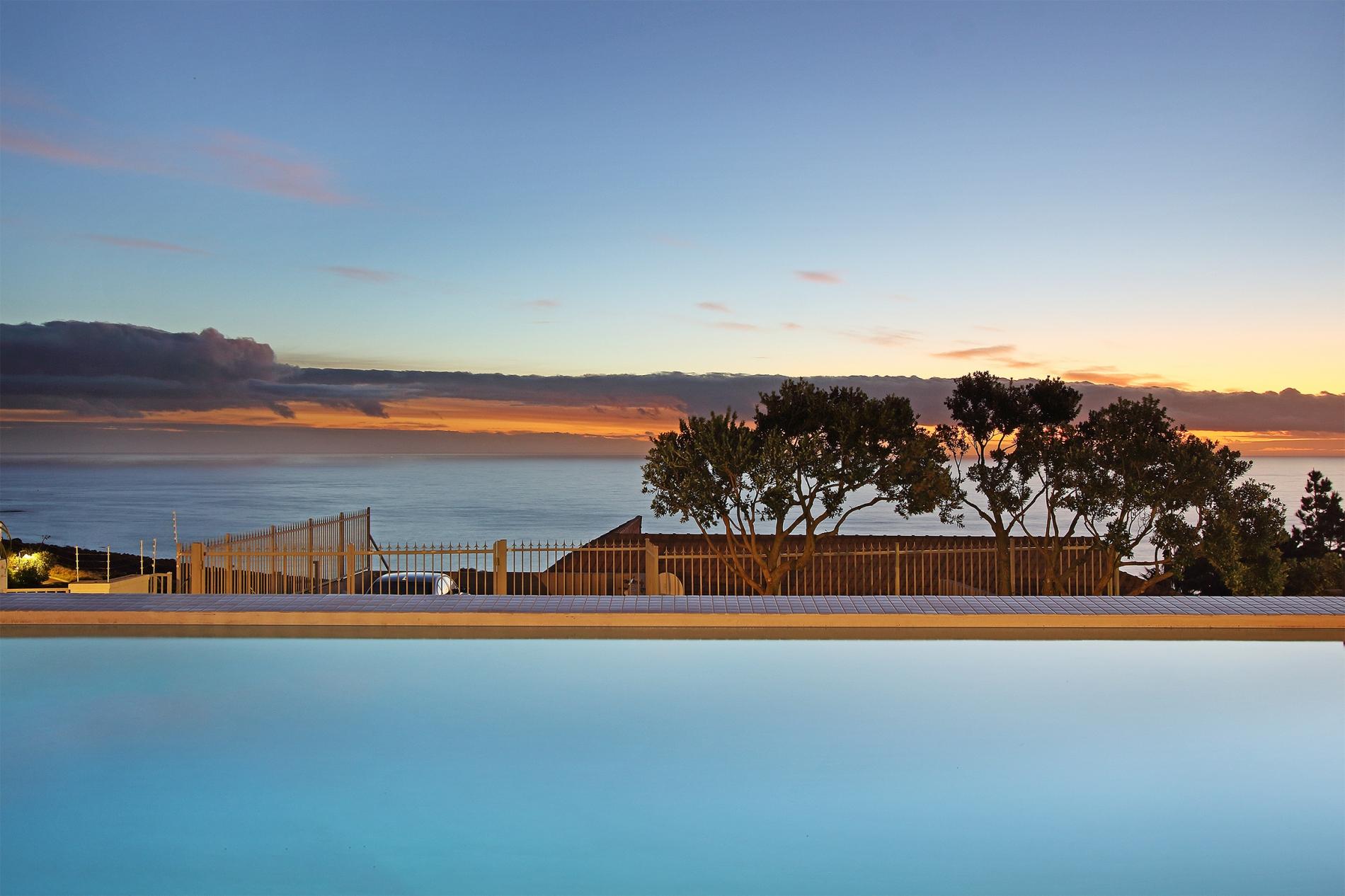 All three bedrooms are sea-facing. Two bedrooms are located downstairs and the master bedroom is located on the upper level. The outdoor area has a large private deck that is ideal for those that love entertaining. An elevated pool on the deck enables one to enjoy the surrounding sea and mountain views. At the back of the property you can relax in the garden setting with a small lounge area. Ty Gwyn is in a great location and close to all the attractions and amenities Cape Town has to offer.
