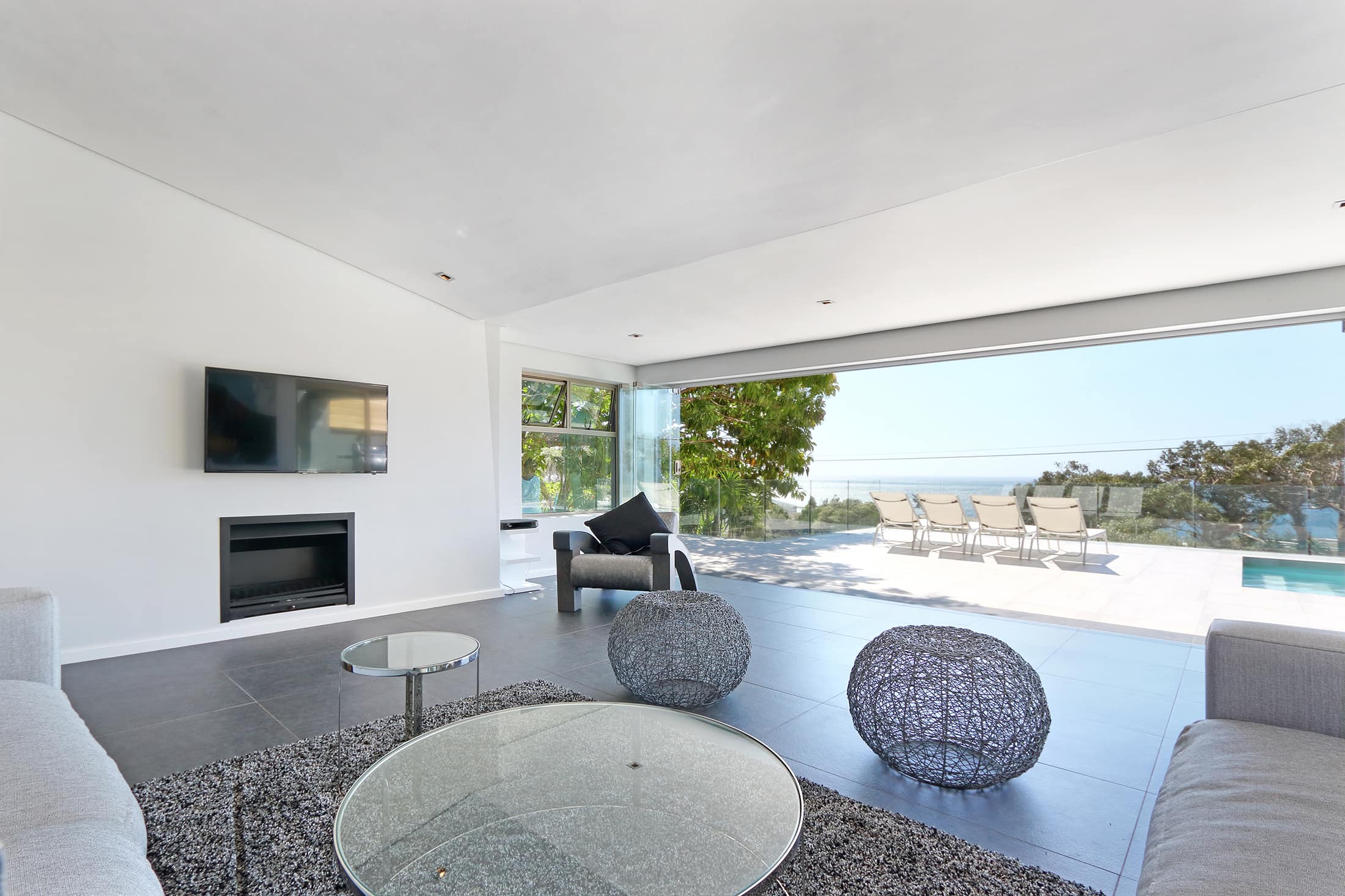 Foldaway doors lead outside onto the pool deck with sun loungers, a patio lounge and breath-taking ocean views. A second, more informal lounge is also available, suitable for children it has comfortable bean bags.