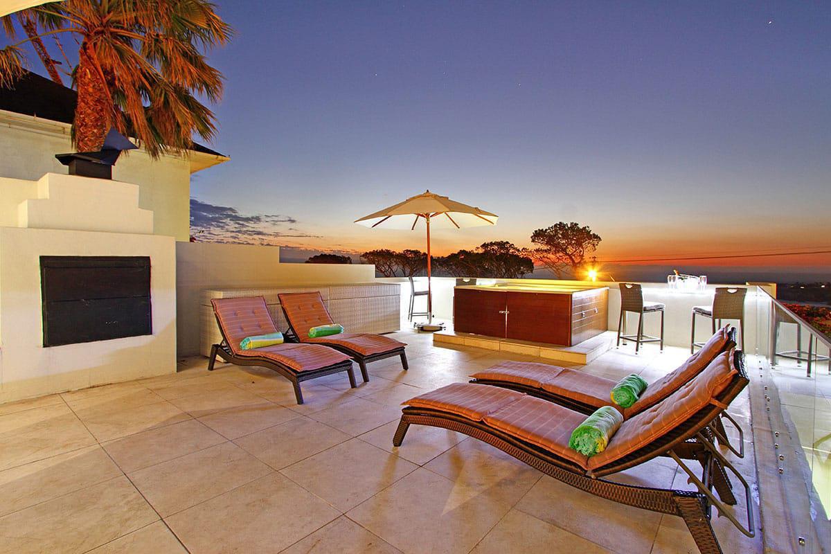 Perched in the enclave of Camps Bay, Villa Galazzio blends coastal living with a layout designed for group stays. Framed by sea and mountain views, this six-bedroom villa unfolds across indoor and outdoor spaces. Multiple living areas flow onto a deck with a pool, jacuzzi, and alfresco dining, while a wood and gas BBQ offer flexibility for meals.
