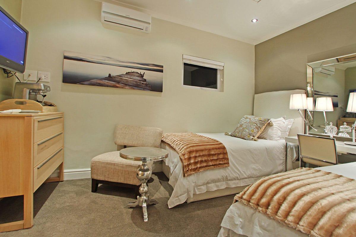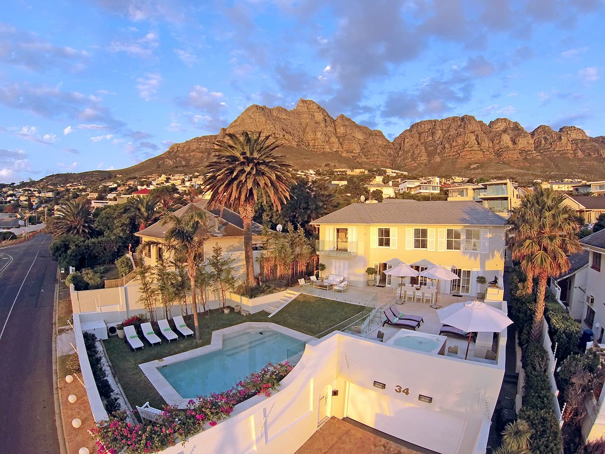 Interiors include a fully equipped kitchen, pool table, gas fireplaces, and bedrooms, several with access to private balconies or courtyards. Within easy reach lie the Camps Bay Promenade and the Table Mountain Cableway, offering a mix of relaxation and exploration. With smart security features, garage parking, and backup power, Villa Galazzio invites long days and shared evenings in one of Cape Town’s most desirable coastal suburbs.