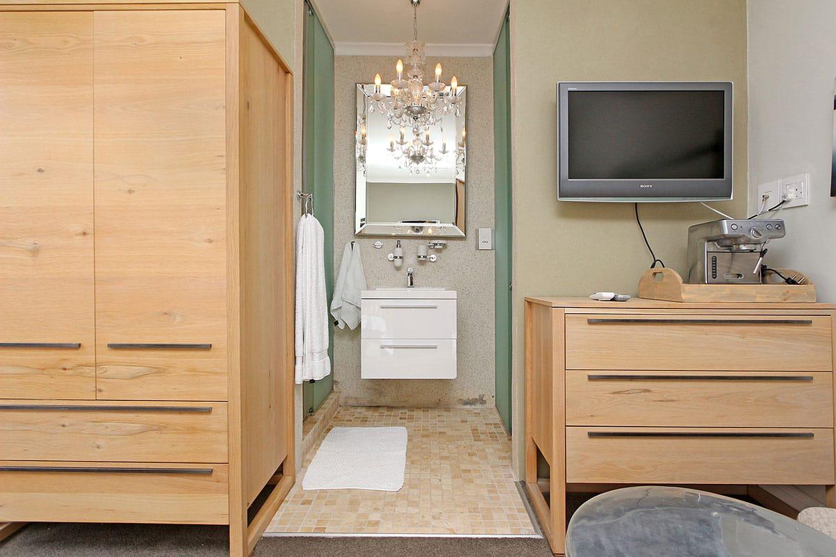 Open ensuite with shower and single vanity