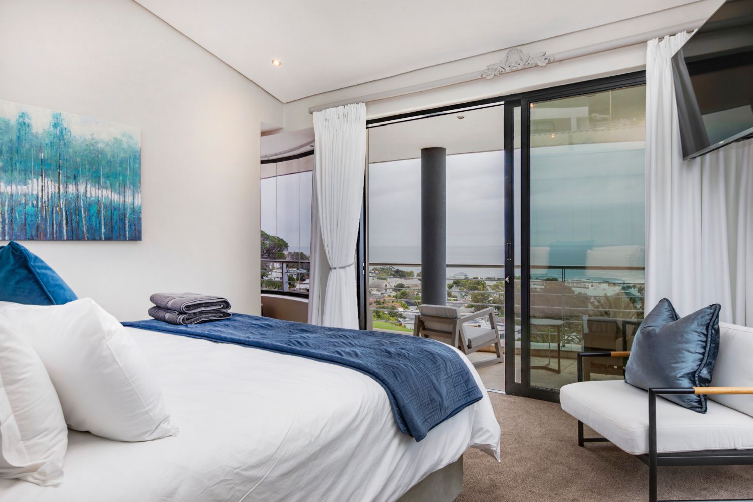 Wescamp Villa is a luxurious retreat nestled in the affluent suburb of Camps Bay. This modern and open-plan villa offers a haven of comfort and sophistication. The master bedroom, with its sea and mountain views, boasts a king bed, walk-through closet, and a spa-like ensuite with a sea-view spa bath. Three additional bedrooms, each with en-suites and unique views, ensure a restful stay.