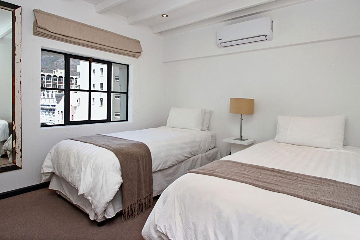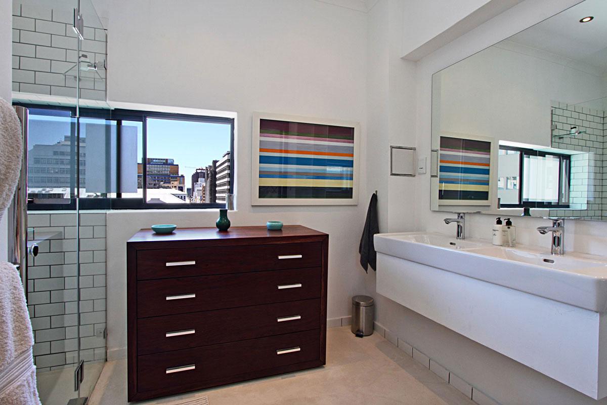 Situated in Bloem Street, in the heart of the city, this apartment is tucked away on the top floor of a Art Deco block in the centre of Cape Town, providing a quiet escape with spectacular Table Mountain and city views.