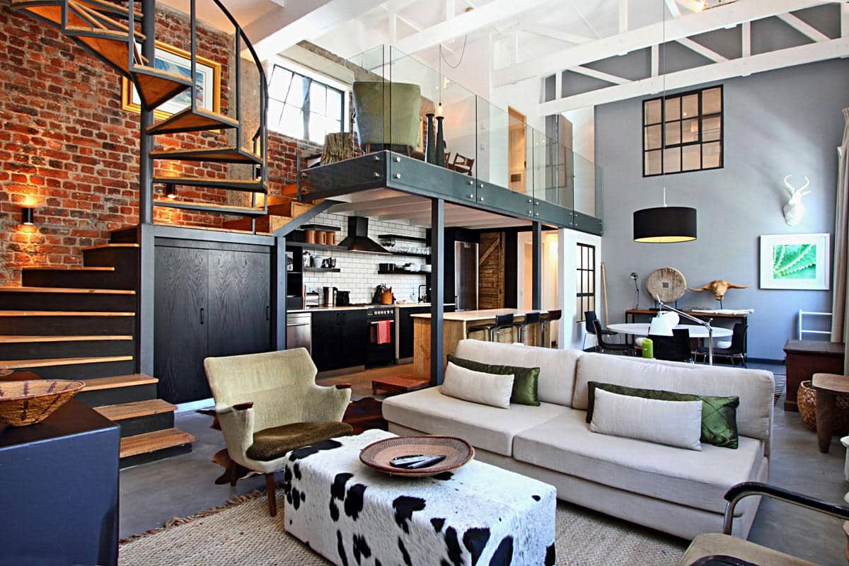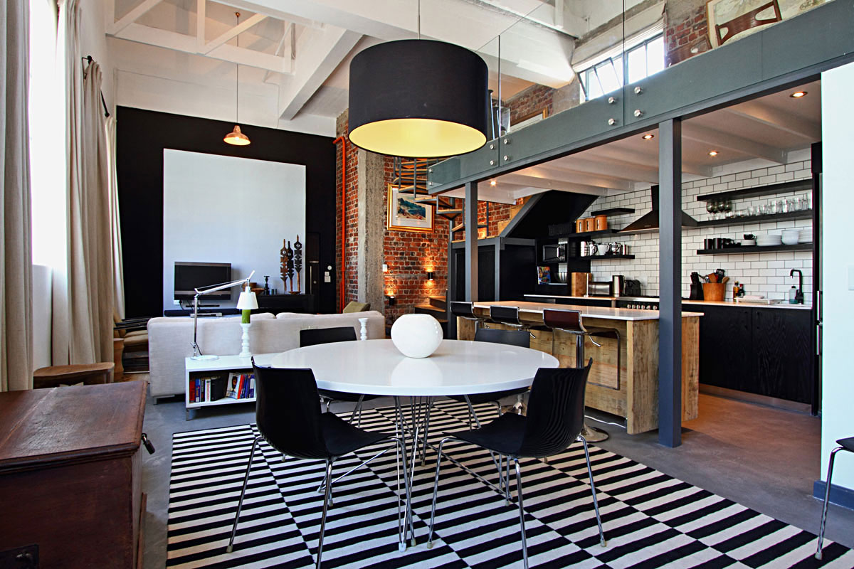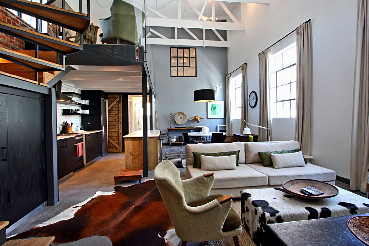 The three-level apartment is spacious and light with double-volume, free-flowing living spaces, two bedrooms and a rooftop patio, with beautiful views of the city and Table Mountain.