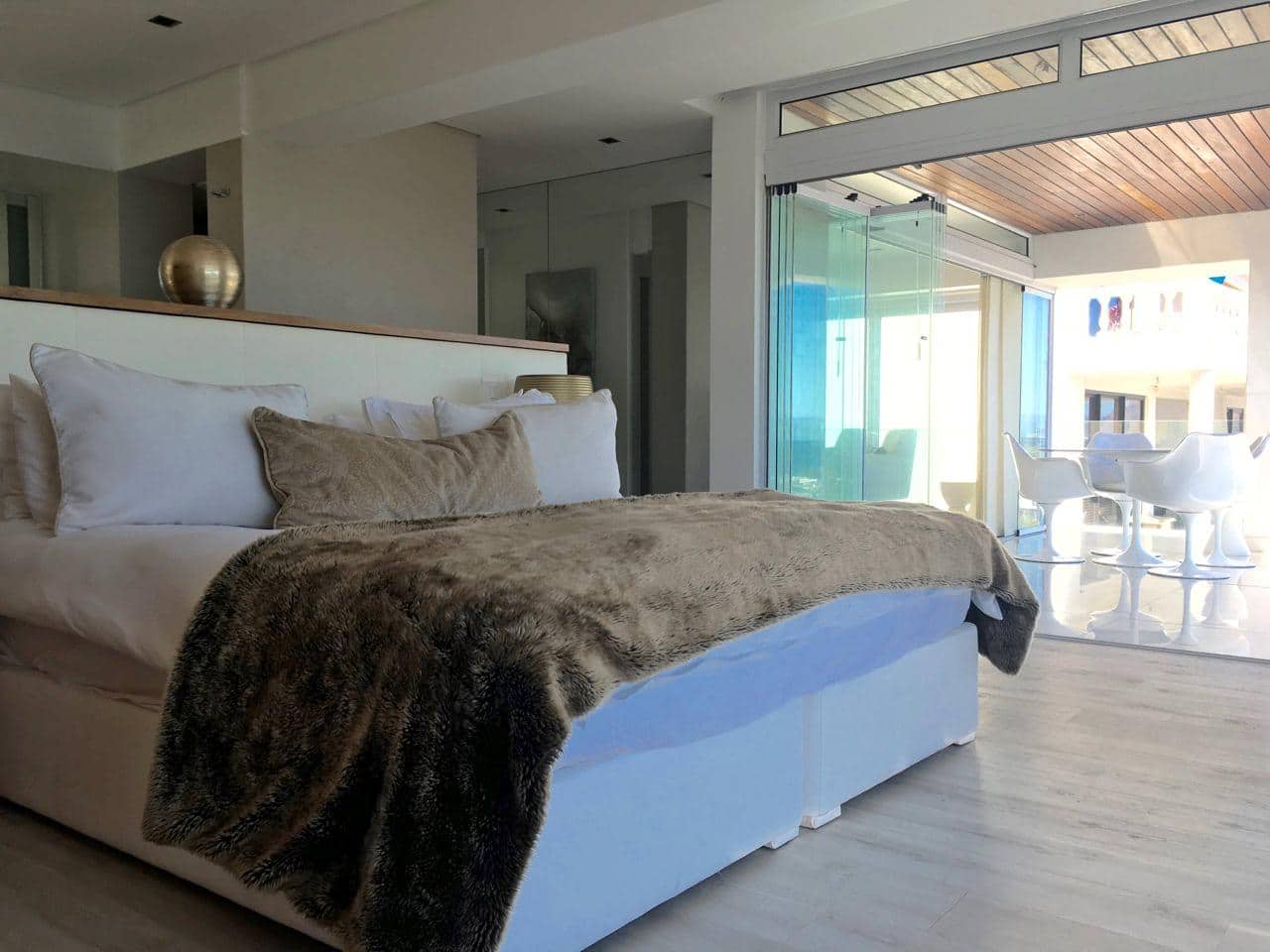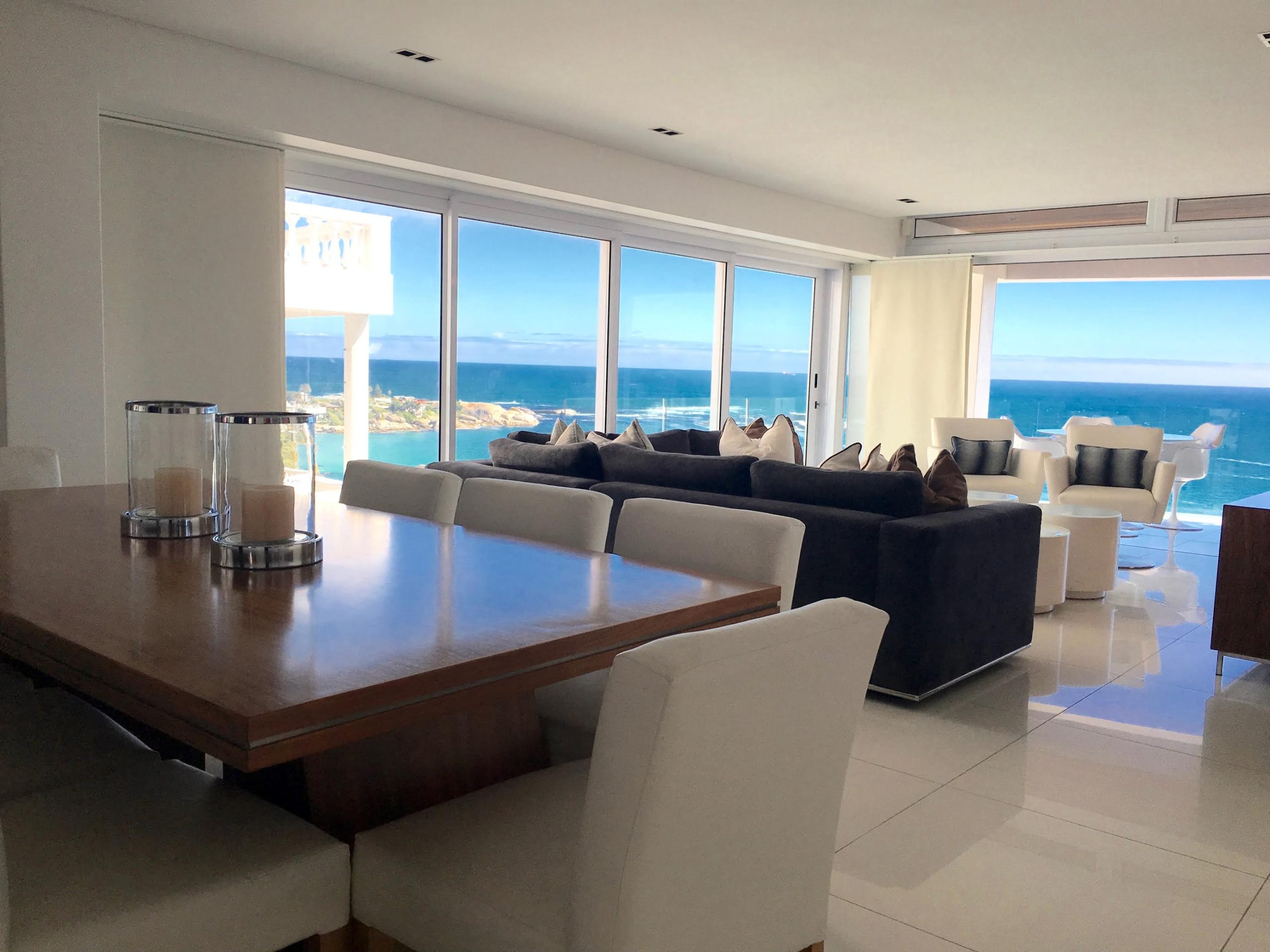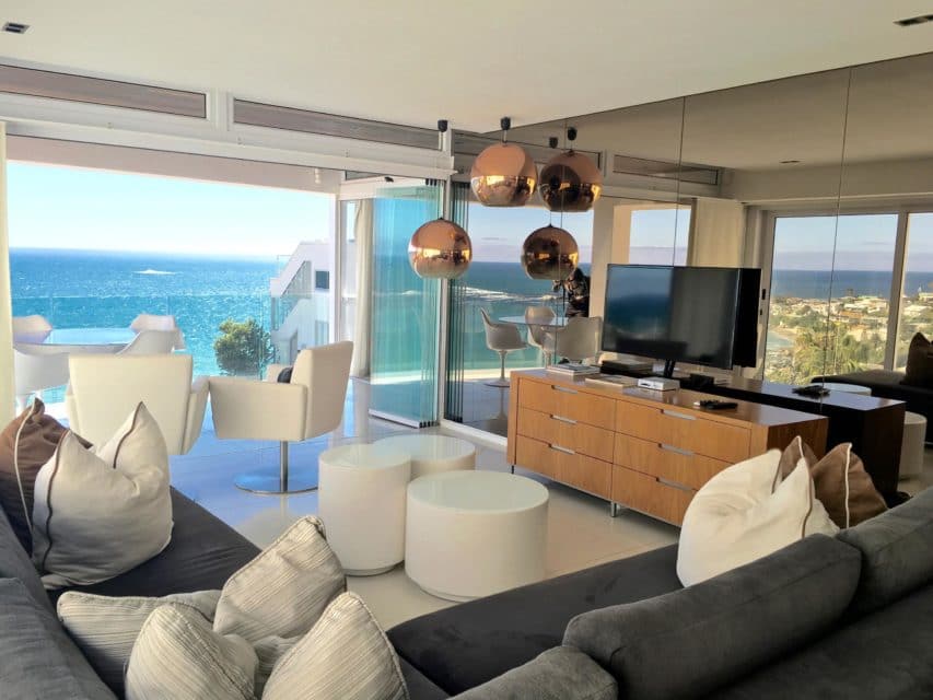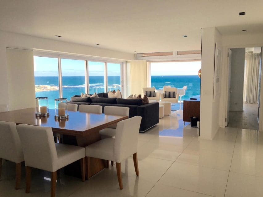 This gorgeous two hundred square meter apartment has every modern convenience available to luxury travelers. Magnificent 180 degree views of the ocean allow for whale watching across world famous Clifton Bay which is host to some of the finest beaches in the world and playground to the international jet set.