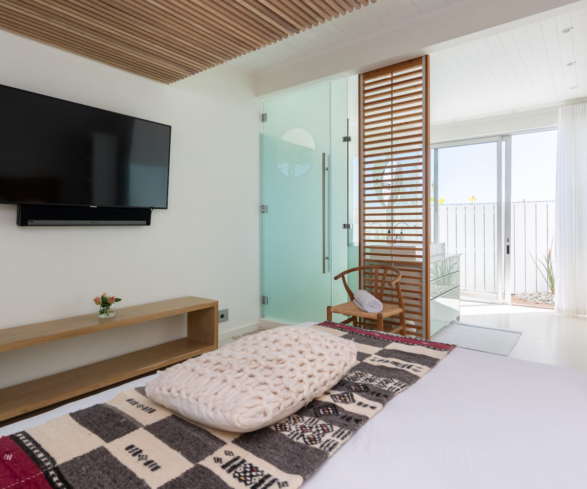 All three bedrooms are en-suite and include air conditioning and flat screen televisions. The master bedroom (with King bed) lies on the top floor with a wonderful private balcony. The second two bedrooms are on the lower floor (both have Queen beds), and an adjacent living room with television.