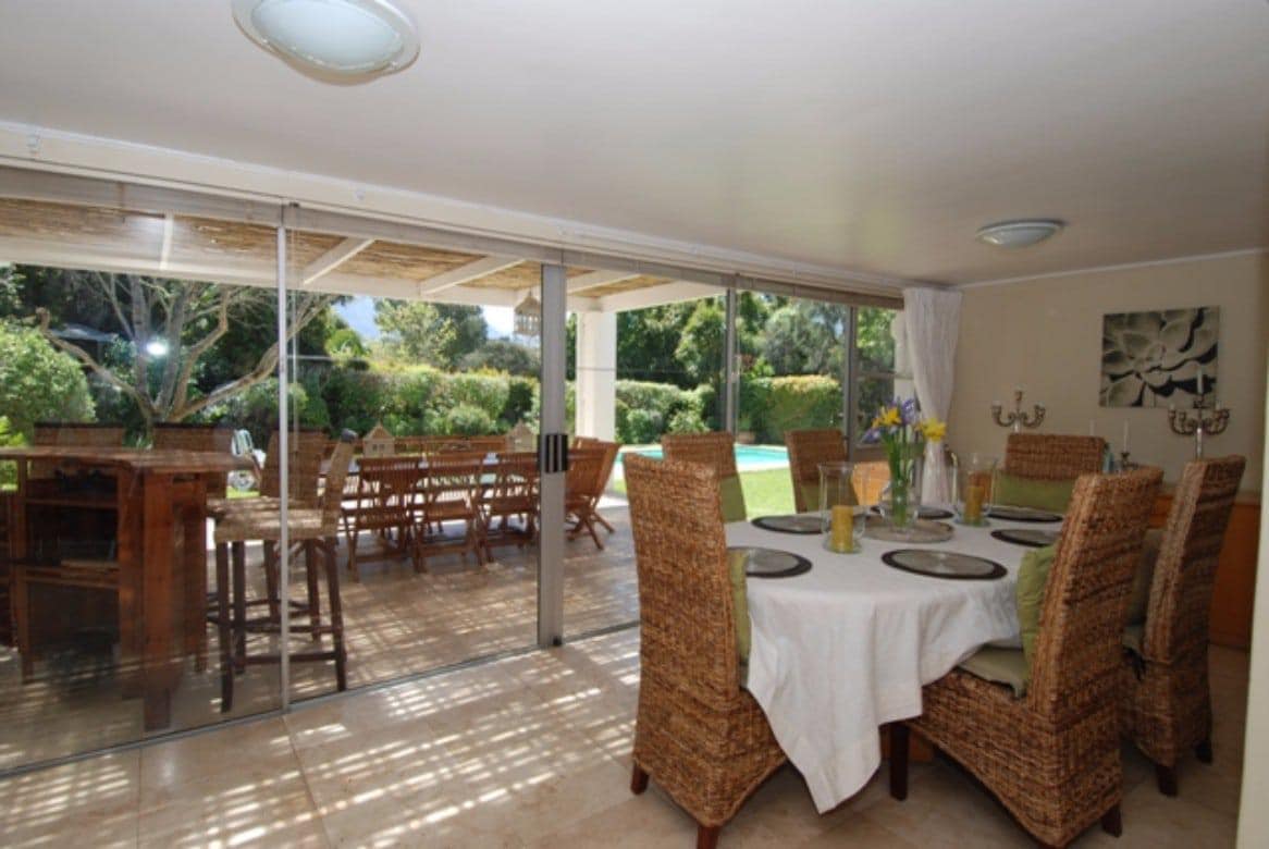 Each of the bedrooms has underfloor heating and views of the garden or mountain. The main bedroom offers a Queen-size bed, en-suite bathroom and outdoor access to the garden. Three of the bedrooms have double beds and the fifth bedroom has twin beds.