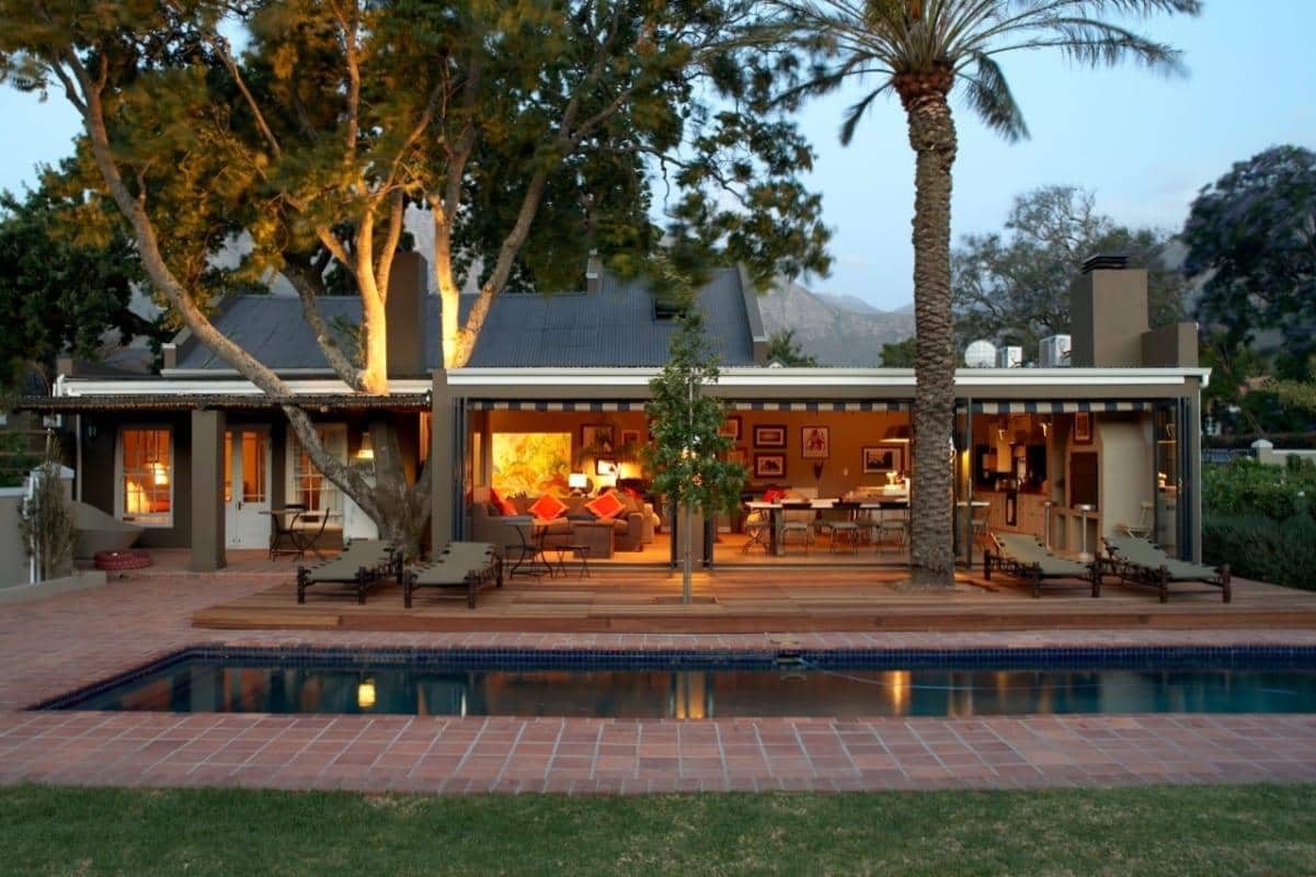 Located in the heart of Franschhoek, nestled between trees and a small vineyard but still being within walking distance from the main street, this is a haven. With a large swimming pool, relaxing sun loungers and stunning mountain views, it is easy to while away the day outside.