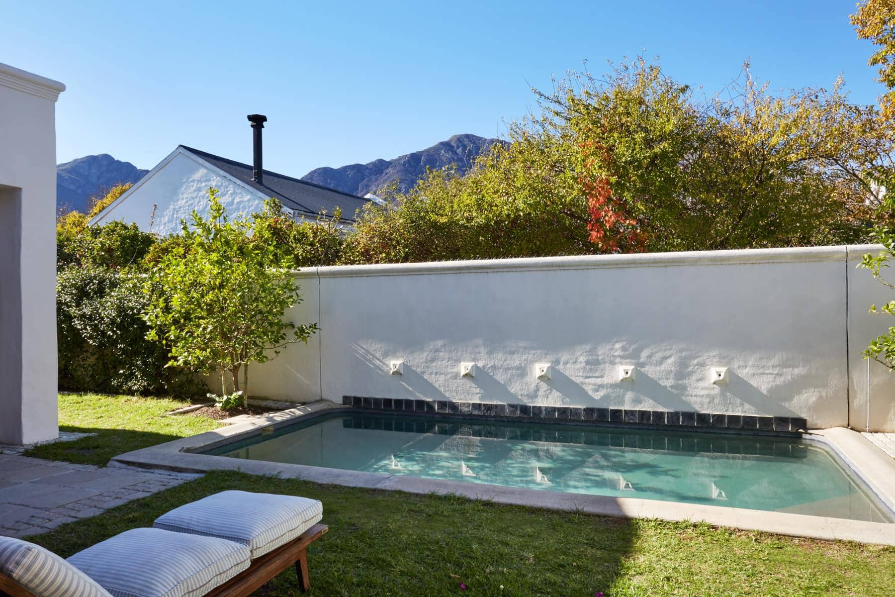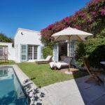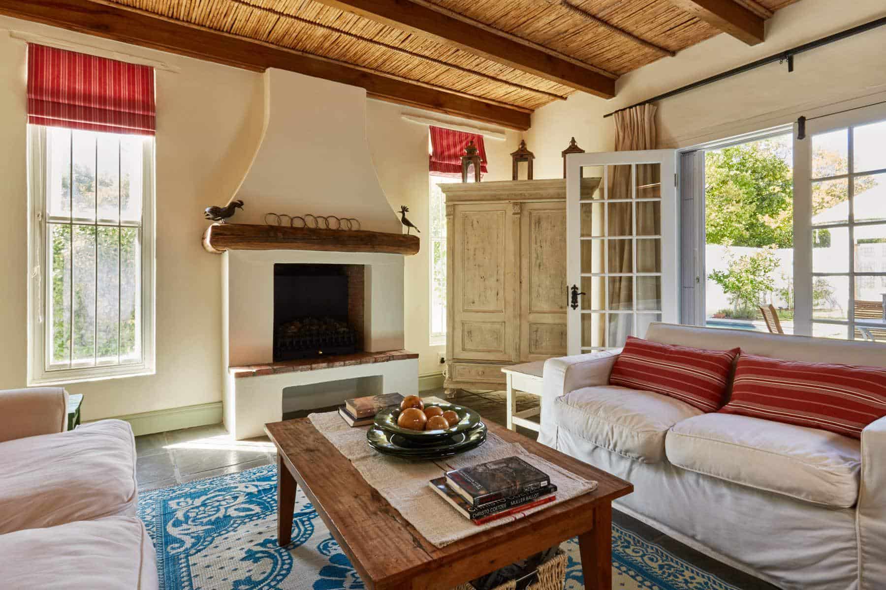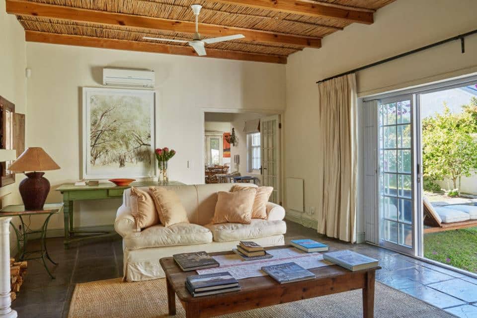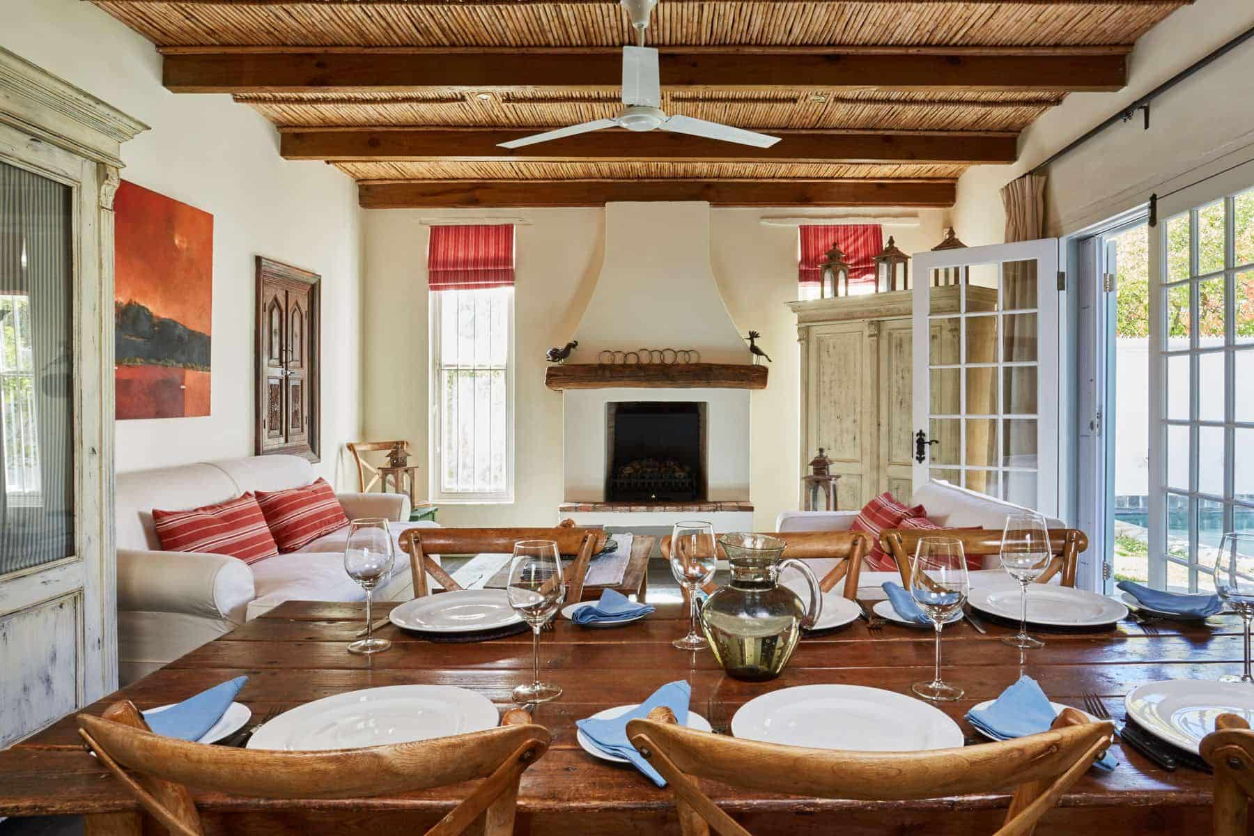 The living and dining area is full or charm, the beautiful kitchen is fully equipped and leads onto a dining area which seats 8. The lounge is at the end of the room with a wood-burning fireplace and TV. A second formal lounge is available. Doors open onto the garden with a swimming pool, sun loungers and outdoor dining.