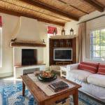Both bedrooms have air-conditioning, ceiling fans and panel heaters. The main bedroom has a King-size bed, large sash windows and doors that open onto a courtyard. There is an en-suite bathroom with bath and shower. The second bedroom has twin beds and doors that lead onto an outdoor dining area. It also has its own en-suite with bath and shower.