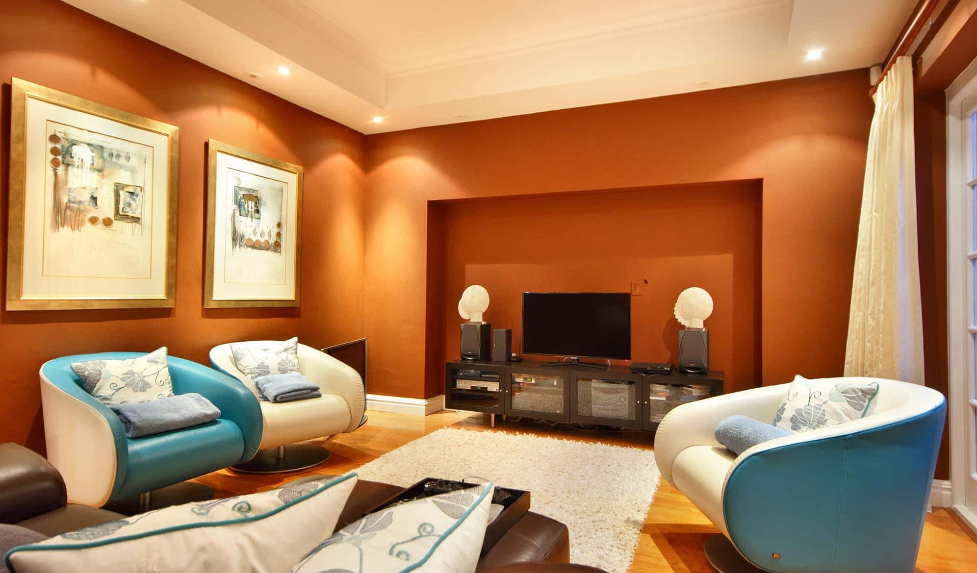 Separate home theatre with large flat screen TV, DVD, DSTV and music system