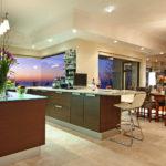 This is a chef's dream with Italian dark wood, glass and marble counter tops.