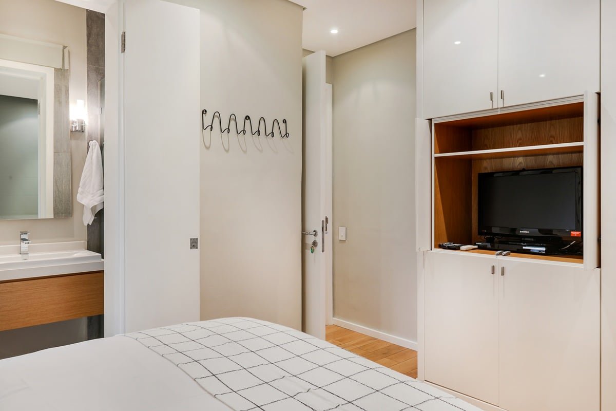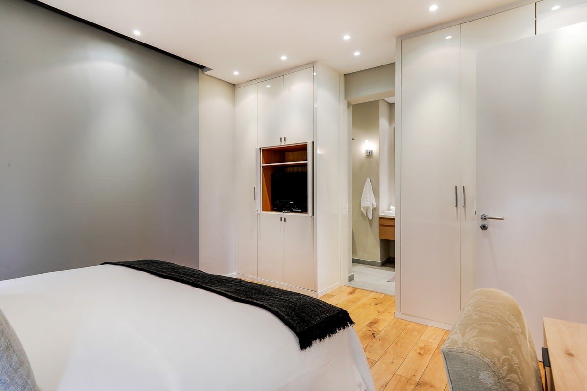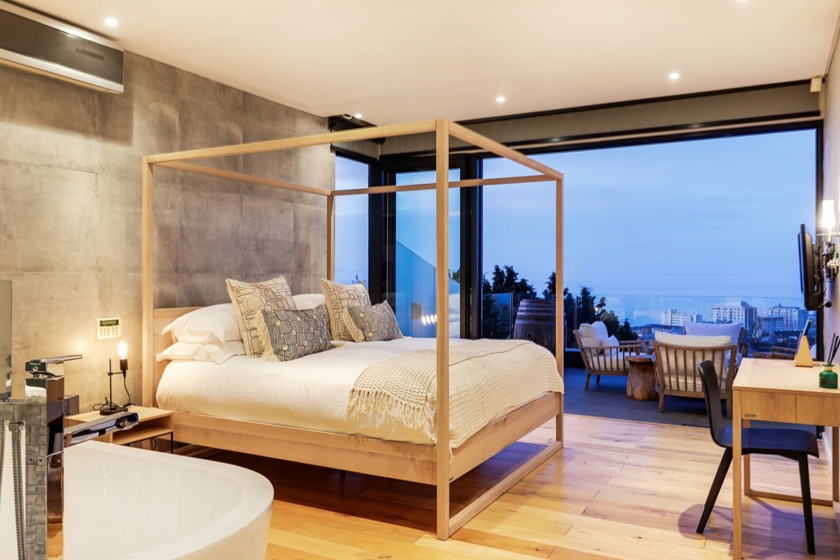 The master en-suite bedroom has access onto the balcony and enjoys the same city views.