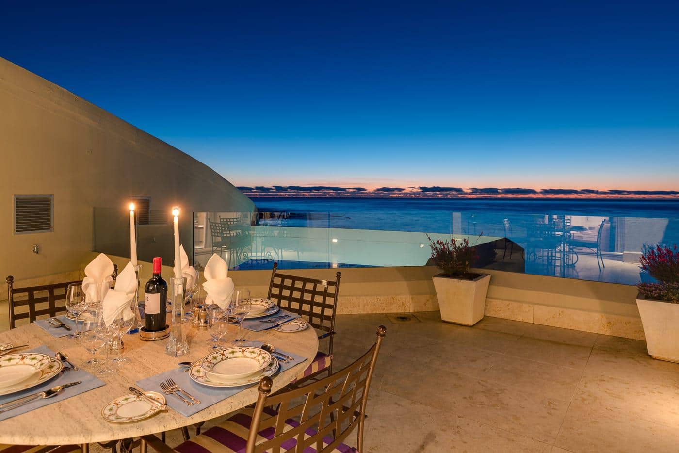 Outside on the balcony is an infinity pool with sun loungers, ample seating to enjoy the ocean views and a BBQ.