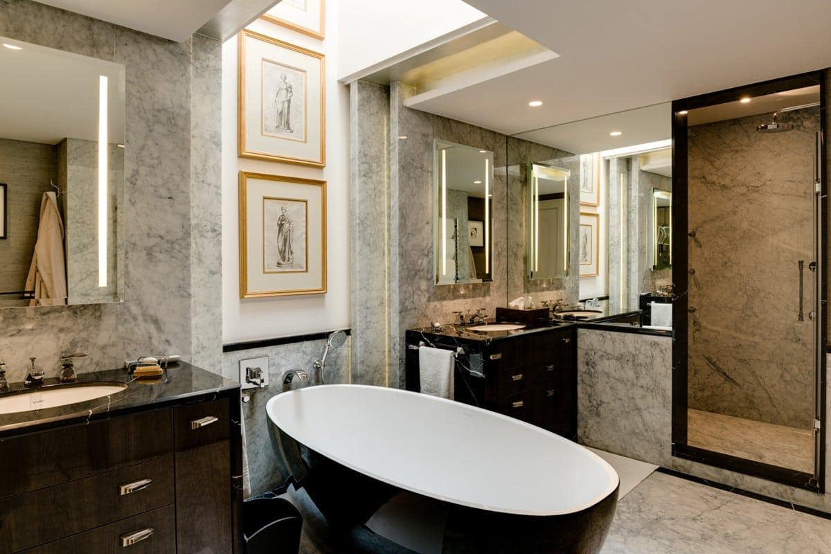 En-suite bathroom - double basins, bath, separate shower and heated towel rails