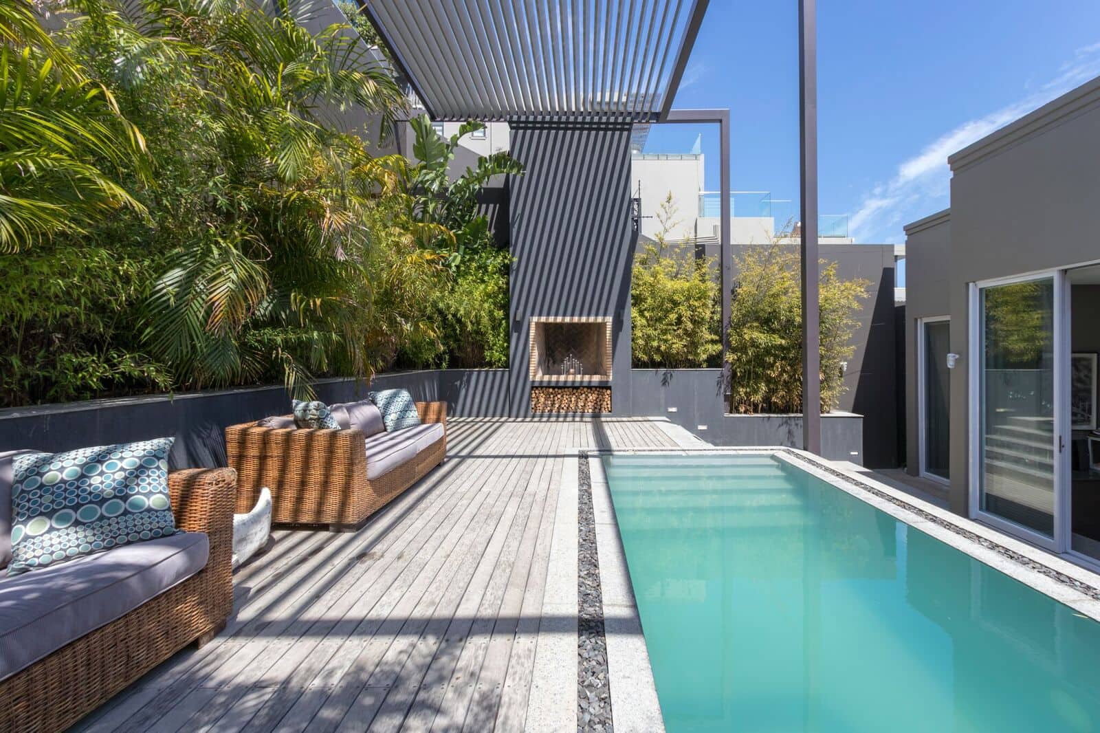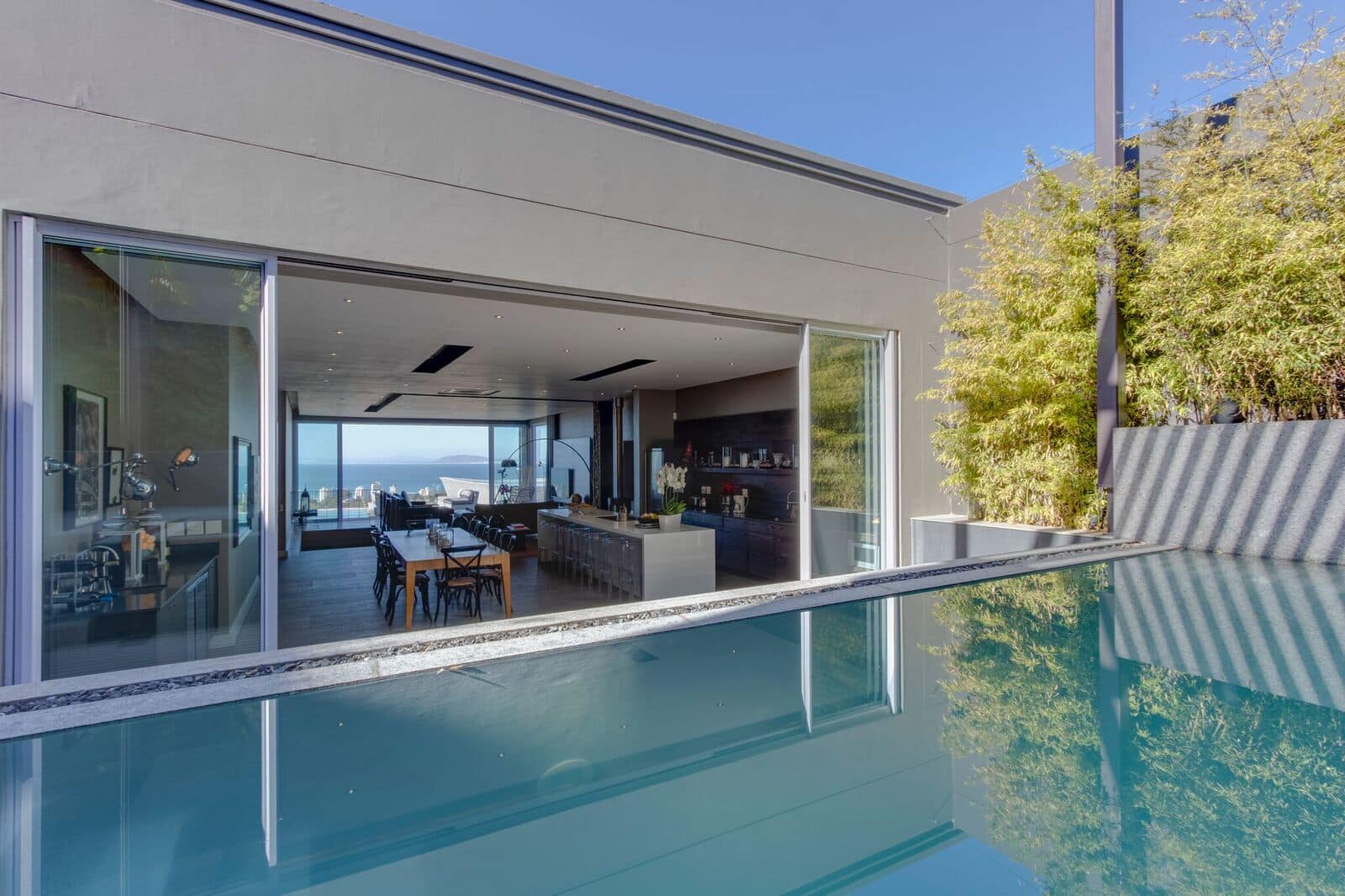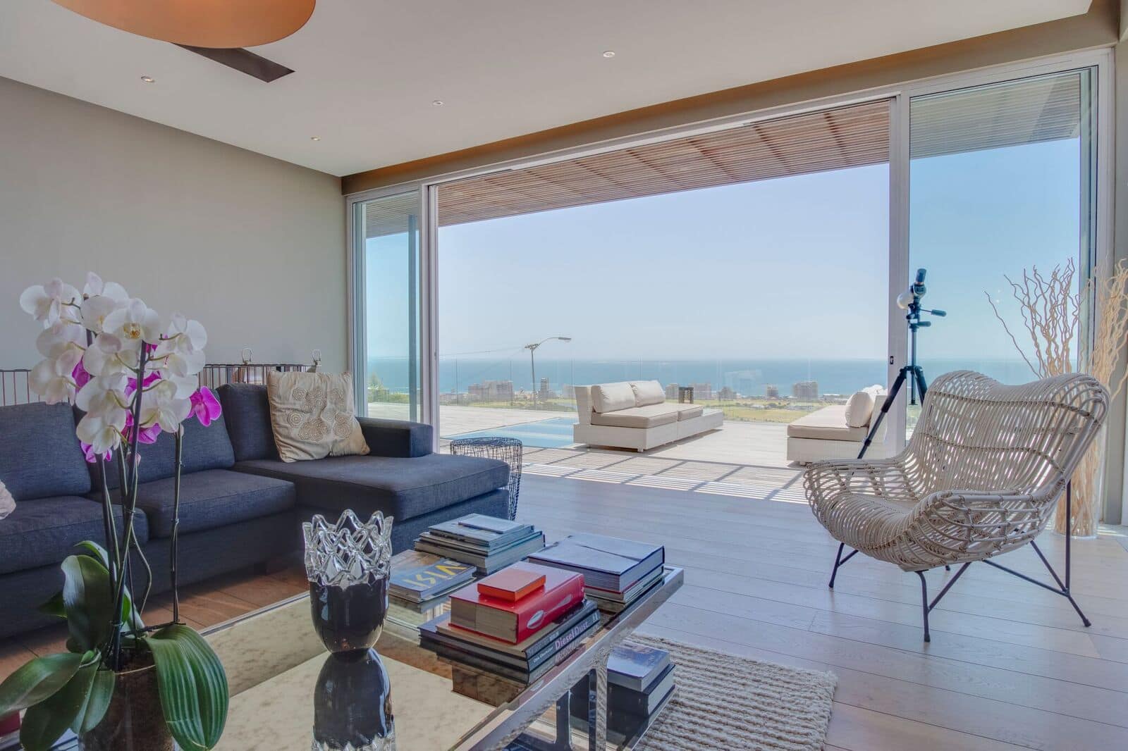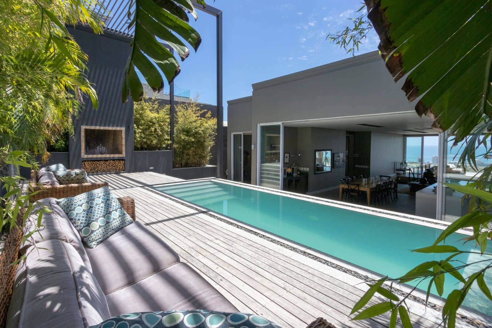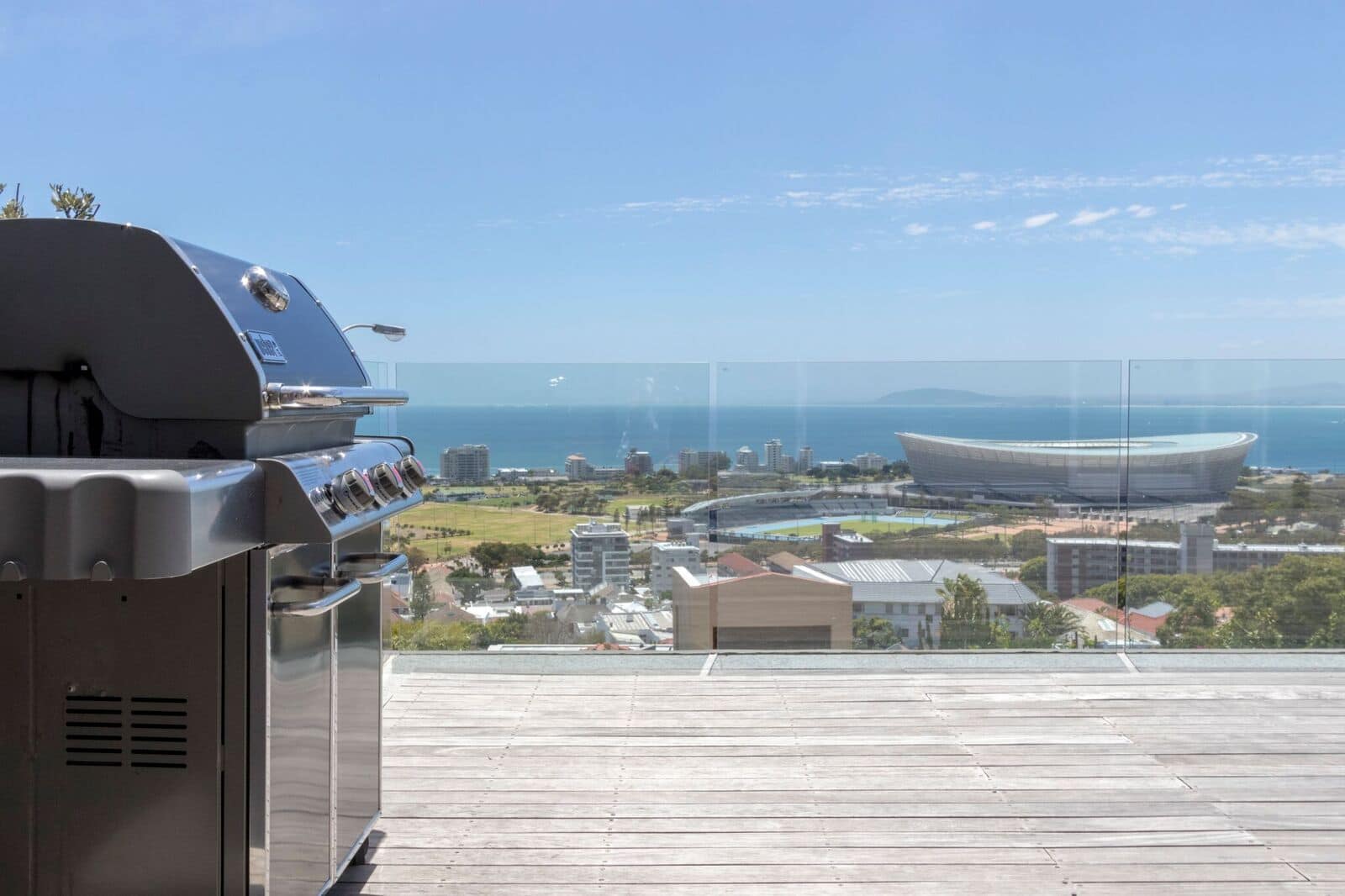 Experience the art of living in this opulent, stylish and open plan 3 bedroom villa, on the peak in trendy Green Point. Sensational sweeping views over the ocean are a perfect backdrop to this extraordinary urban locale. Count the clouds by day or the stars at night, as you float away in your private outdoor heated pool. If you must drag yourself off by the lure of local attractions…explore the cosmopolitan V&A Waterfront, gorgeous beaches, Green Point Park, Stadium and the most decadent eateries only minutes away.