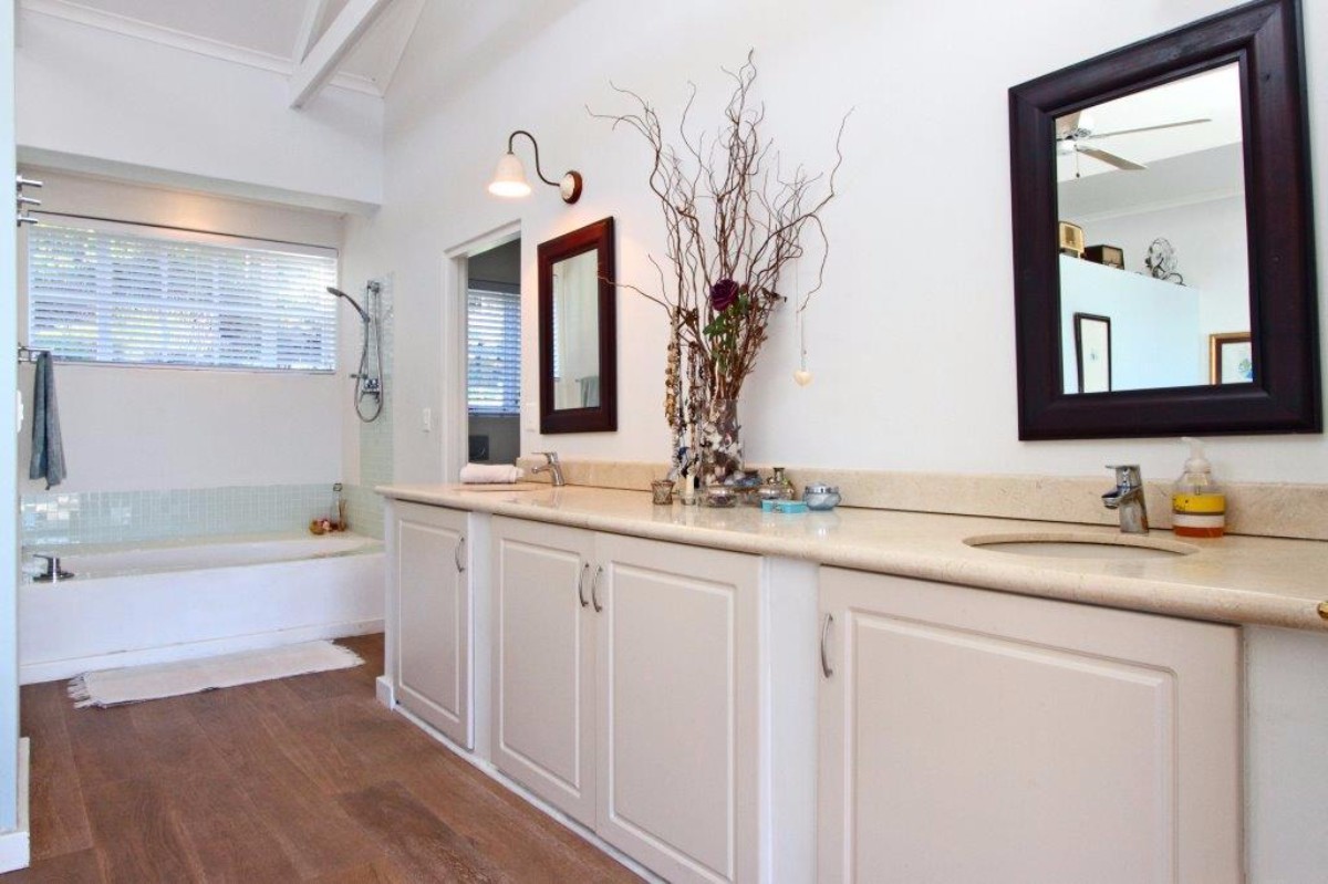 Outside is a lovely covered patio which wraps around the corner of the house, providing a great place for sundowners or dining al fresco. There is also a built-in BBQ, comfortable lounge furniture and a large pool deck with sun loungers.