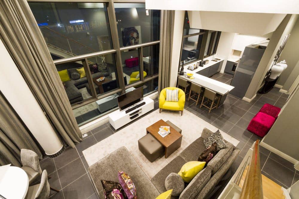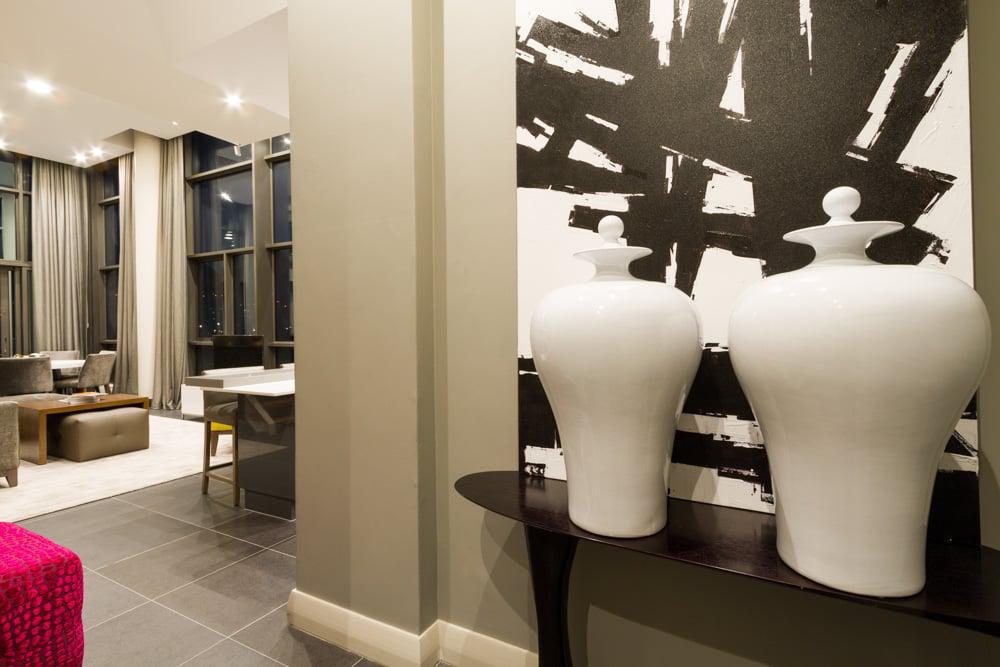 Showcasing local art and luxurious furnishings, this stunning apartment offers a fully equipped kitchen, formal dining for 6 guests and a spacious TV lounge. Each of the bedrooms has a Queen-size bed and an en-suite bathroom.