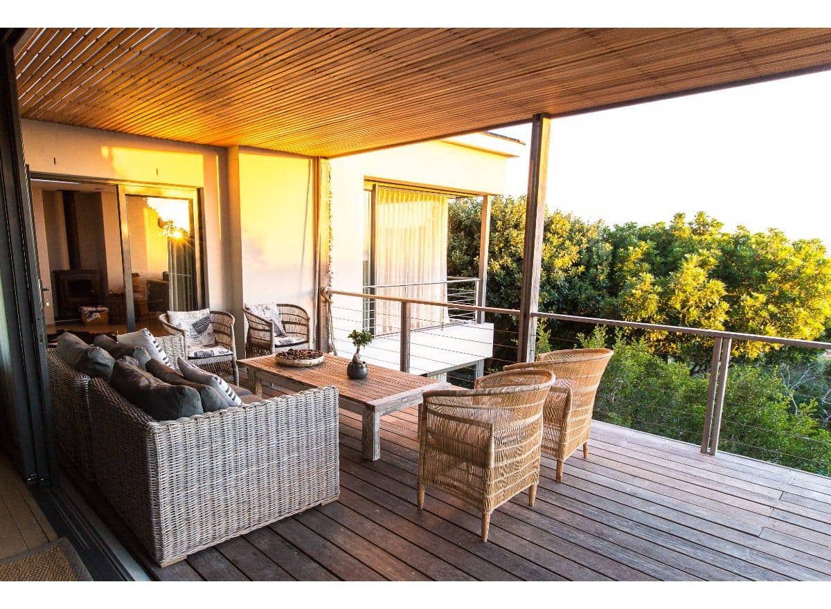 Lead out onto a large deck with an entertainment area