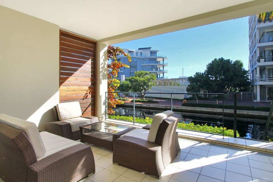 The balcony over looks the waterways and has comfortable patio furniture, ideal for relaxing and reading a good book, or sipping a delicious cocktail.