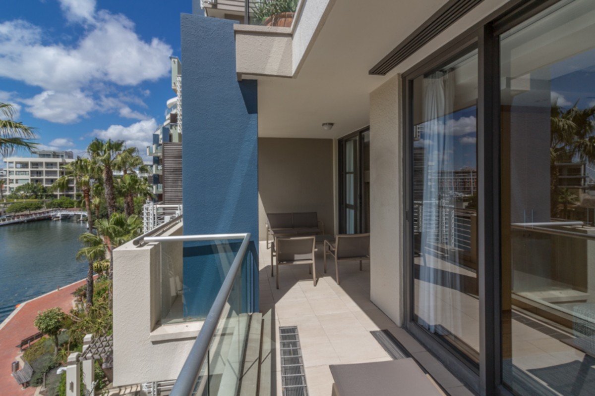 Outside on the balcony is comfortable patio furniture and a sun lounger, where you can relax and enjoy the views of the canal. There are also four swimming pools and a fully equipped gym for use by all guests.