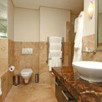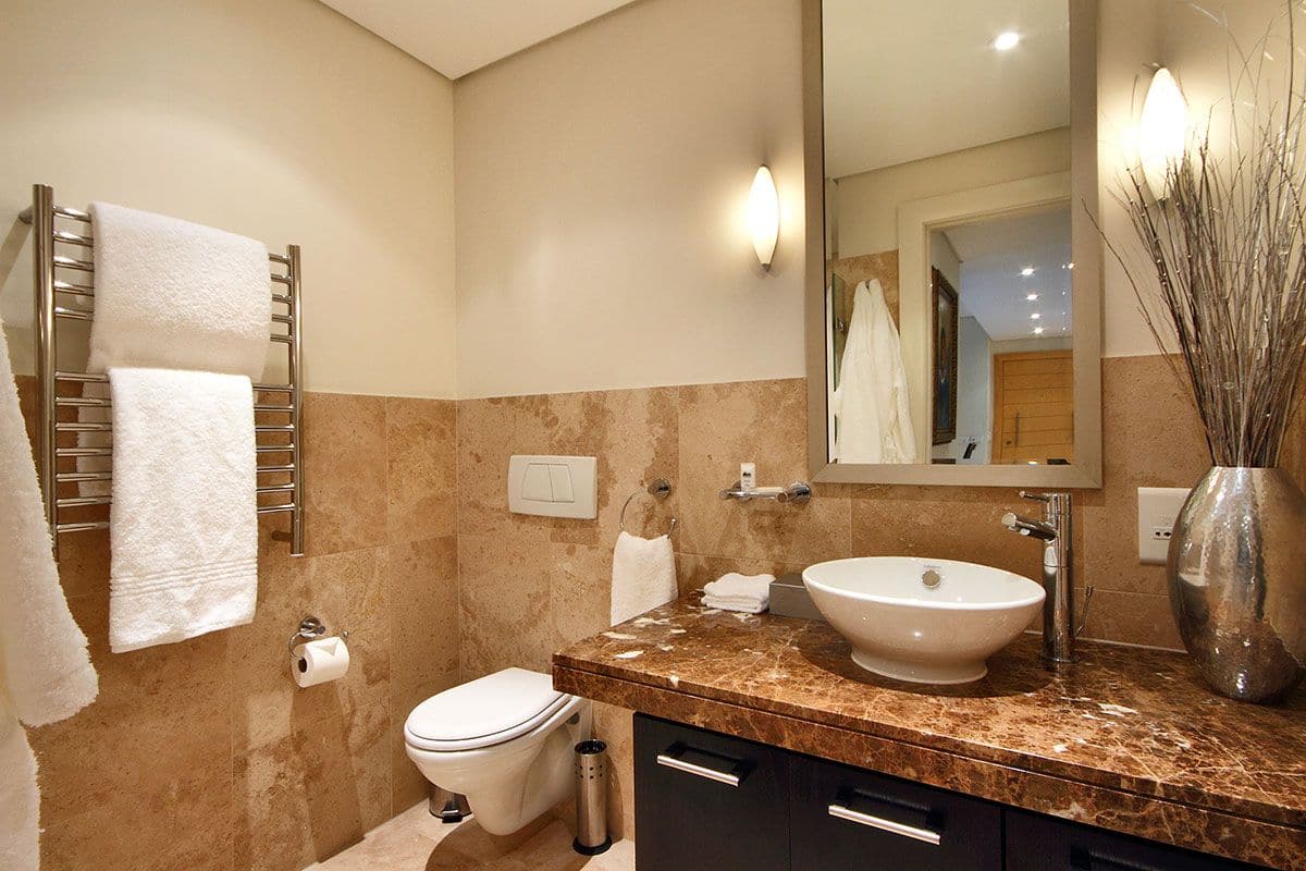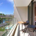 The first bedroom has a Queen-size bed and an en-suite with bath and shower. Sliding doors open onto the balcony with outdoor seating and views of the marina. The second bedroom has twin beds, easily converted into a King, it also has an en-suite with shower and views of the garden.
