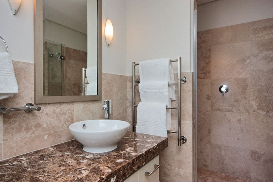 En-suite bathroom with shower and heated towel rails