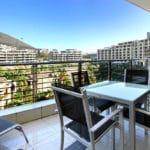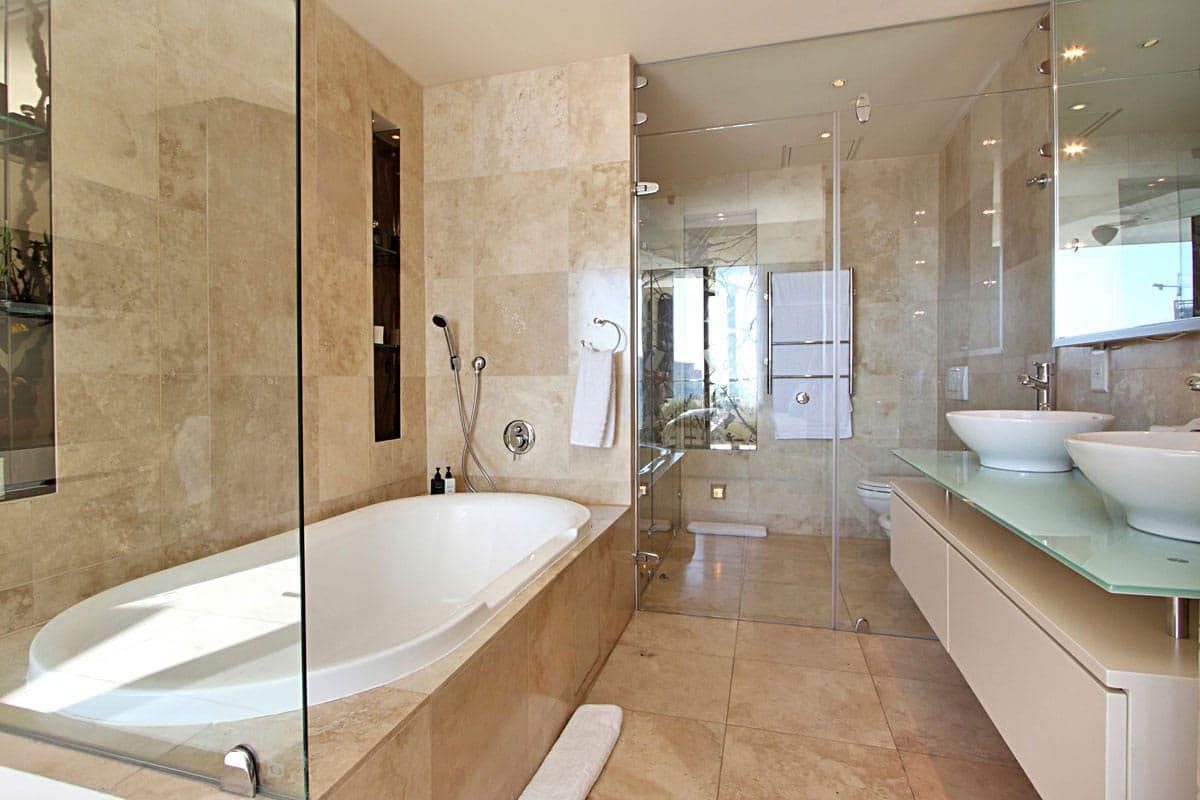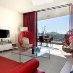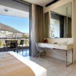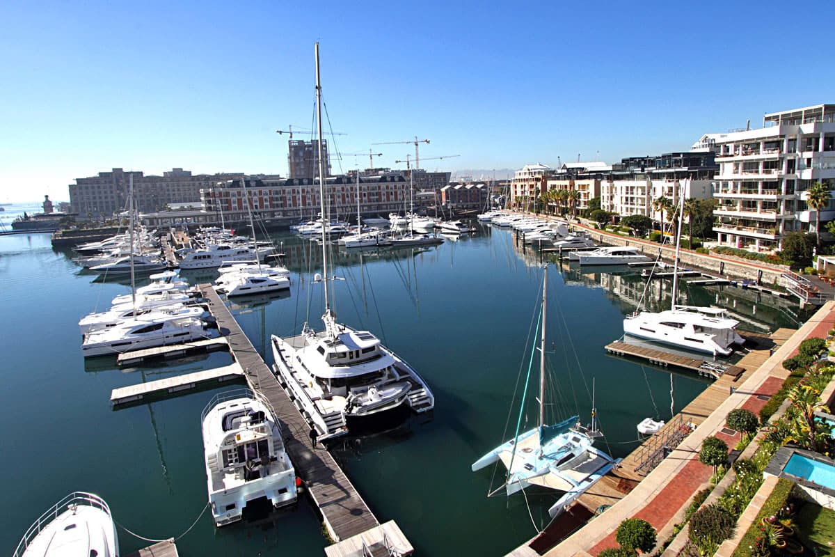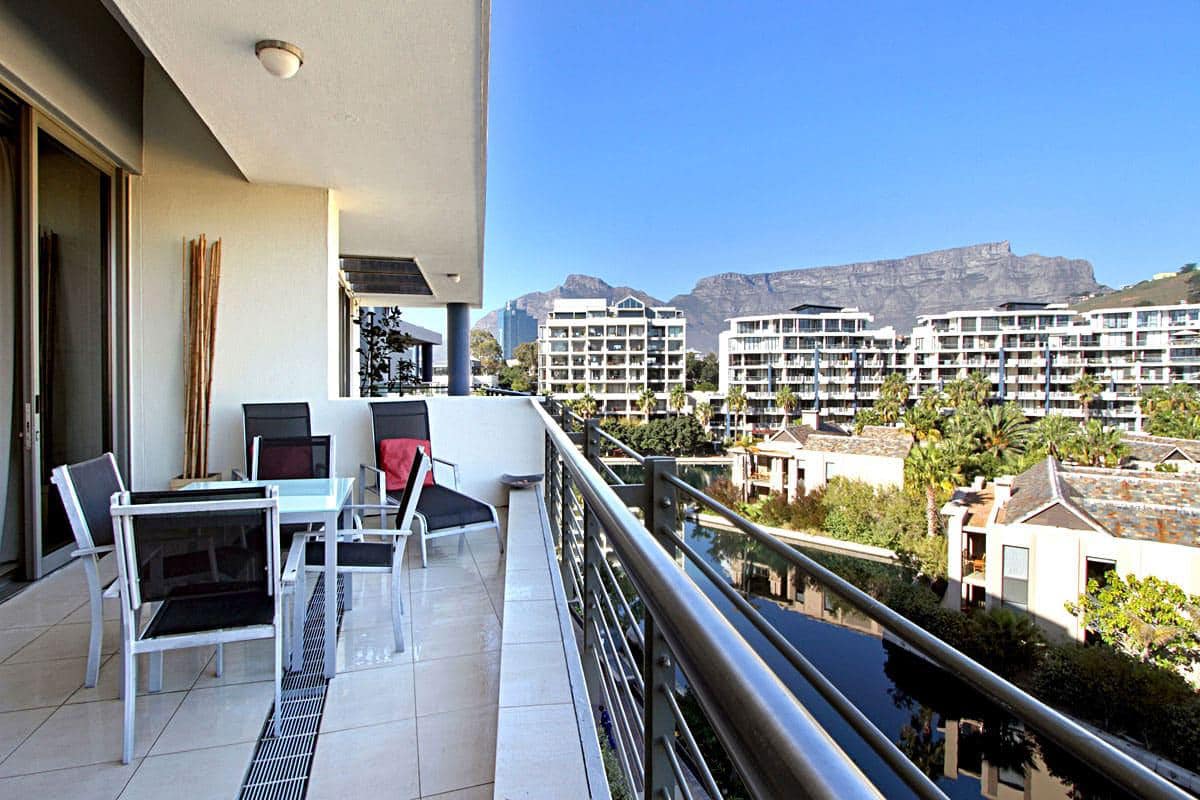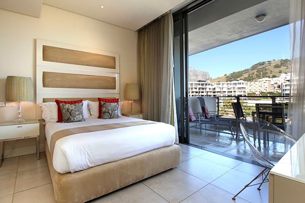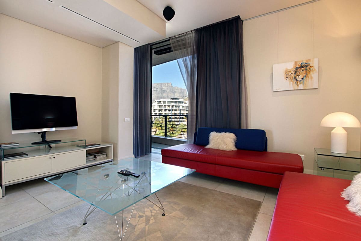 Floor to ceiling doors open onto a large balcony overlooking the Waterfront Marina and the Cape Grace Hotel and beyond through the Bascule Bridge, then the Swing Bridge at the Clock Tower and out on to the open sea. This is a perfect place to have breakfast as the V&A Waterfront is waking up. Even better, enjoy a sundowner while surveying the luxury yachts come back from a days cruising